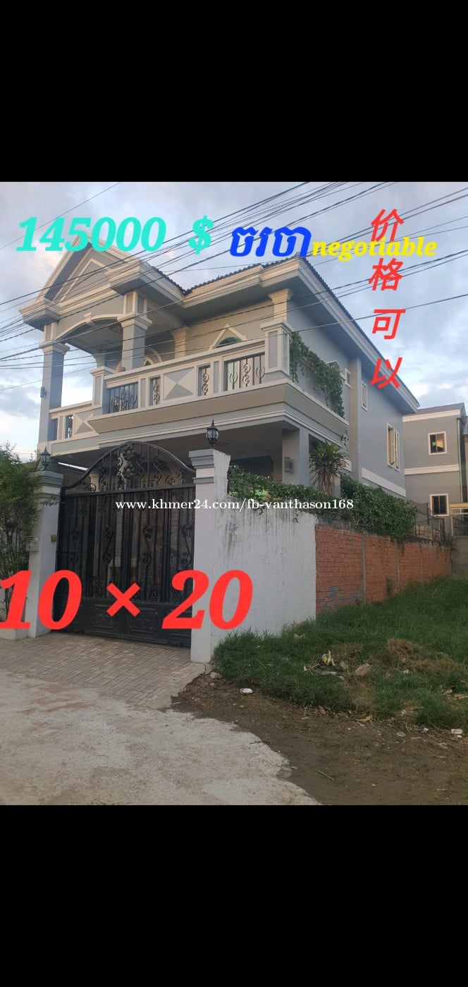 វីឡាម៉ូតស្អាត 别墅出售 villa for sale នៅជិតក្រុងភ្នំពេញ ជិត aeon 3 ជិតផ្សារជិតសាលា ។ សម្រាប់បងប្អូនដែលមិនចង់រស់នៅឆ្ងាយពីទីក្រុងពិបាកទៅធ្វើការនិងកូនរៀនក្នុងក្រុងភ្នំពេញមិនបាច់ជួលផ្ទះ ទីនេះសមរម្យសម្រាប់បងប្អូនទៅនិងមកមិនយឺតពេល។ ដំបូលប្រក់ពីរជាន់គឺអ៊ីសូឡង់ និងក្បឿងសេរ៉ាមិច ។ ជញ្ជាំងរៀបឥដ្ឋ 20 មានបង្អួច 23 មានខ្យល់ចេញចូលក្នុងផ្ទះគ្រប់គ្រាន់ទោះជាដាច់ភ្លើងអគ្គិសនីក៏ដោយ។បង្កាន់ដៃជណ្ដើរ ទ្វារធំទ្វារបន្ទប់គេងនិងទ្វារបន្ទប់ទឹកធ្វើអំពីឈើប្រណិតទាំងអស់។មានបន្ទប់ទឹក5 បន្ទប់គេង4 បន្ទប់ទល់ភ្ញៀវ2 លើក្រោម ។ជាន់ខាងលើមានហ្វេរ៉ង់ដាធំទូលាយ សម្រាប់អង្គុយលំហែពេលល្ងាច។មានចំណតរថយន្ត។ដីទំហំ 10× 20 ជាតំបន់ប្រកបដោយសក្កានុពល ក្បែរផ្លូវតូច ធំជិតផ្លូវ 217 (ផ្លូវចំការដូង)ក្បែរដីដែលមានទំហំធំៗសម្រាប់សង់បូរីសហគ្រាសរោងចក្រ ។ បើចង់ទិញដីពង្រីកទំហំបន្ថែមទៀតក៏បាន ដើម្បីធ្វើភូមិគ្រឹះ។ បើអស់លោកលោកស្រីចាប់អារម្មណ៍សូមទាក់ទងតាមលេខទូរសព្ទ និងTelegram 012889xxxClick To Call _ 015889xxxClick To Call (អាចចរចាបាន)