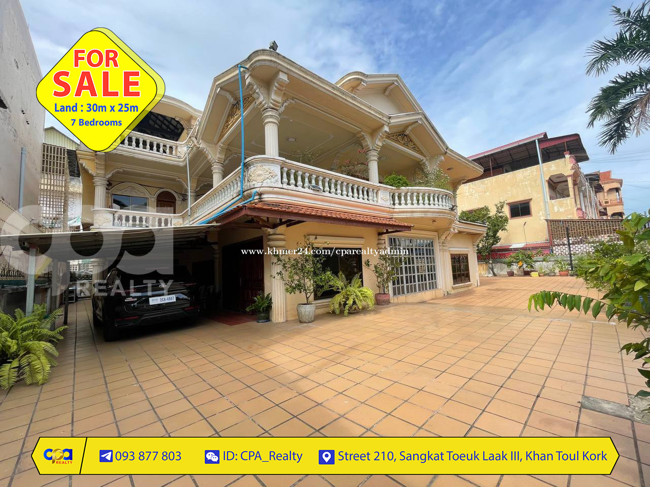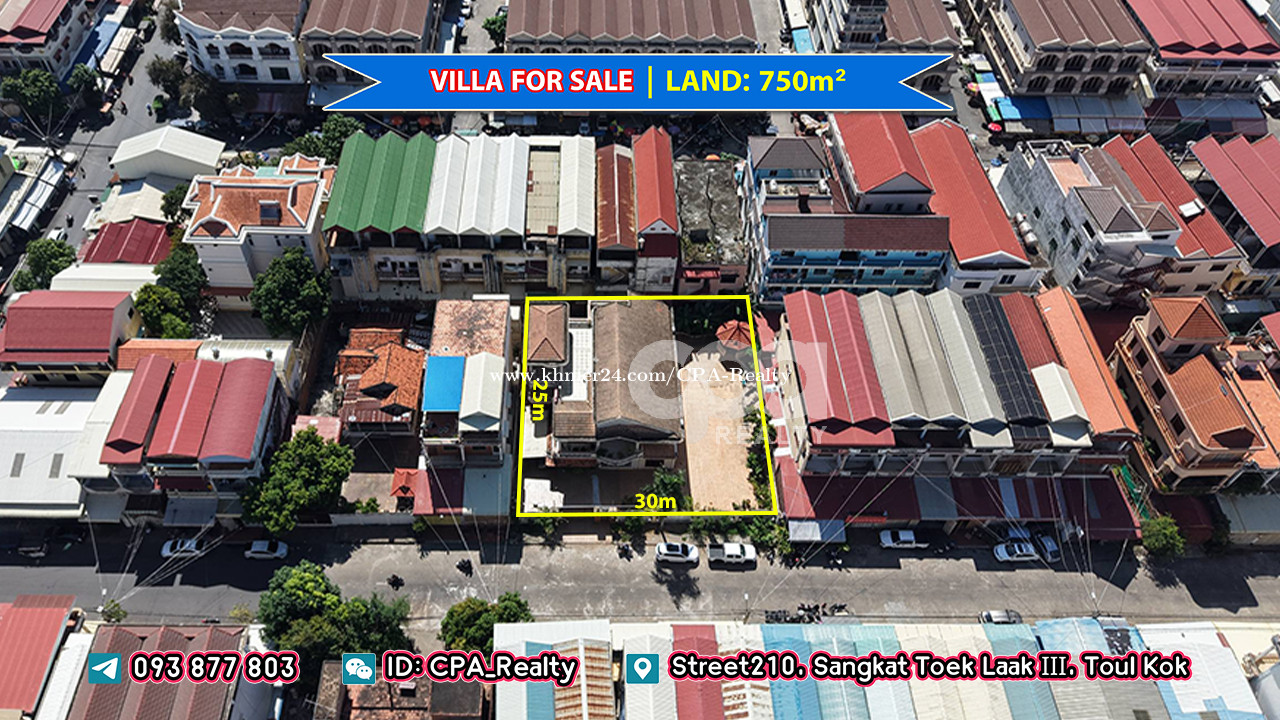 វីឡាលក់នៅទួលគោក ⭕️ទំហំដីក្នុងប្លង់កម្មសិទ្ធិ: 30m x 25m (750m2) ⭕️ទំហំដីប្រើប្រាស់ជាក់ស្តែង: 30m x 29m ⭕️តម្លៃលក់: $2,650/m2 ចរចារ ⭕️មានបន្ទប់កេង៦, ការិយាល័យ១ និងបន្ទប់ទទួលភ្ញៀវធំទូលាយ ⭕️ទីតាំងល្អសម្រាប់គម្រោងខុនដូរ/អាគារពាណិជ្ជកម្ម 📌ទីតាំង៖ ផ្លូវលេខ២១០, សង្កាត់ទឹកល្អក់ទី៣, ខណ្ឌទួលគោក 📌ទីតាំងGoogle៖ 11.55883, 104.89598 🆔01089 ☎️ 𝟎𝟗𝟑 𝟖𝟕𝟕 𝟖𝟎𝟑 👍𝙩𝙚𝙡𝙚𝙜𝙧𝙖𝙢: https://t.me/cparealtors