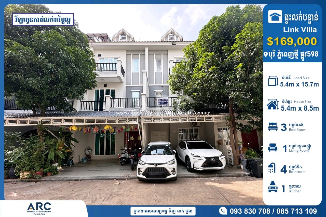 #Link Villa For Sale at Borey Phnom Penh Thmey 598 #វីឡាកូនកាត់ដាក់លក់បន្ទាន់នៅក្នុងបុរី ភ្នំពេញថ្មី 598 ជិតផ្សារទំនេីបអុីអន២ 🔹 តម្លៃលក់ : $169,000 ( ចរចាម្ចាស់ផ្ទាល់ ) 🔹 បូករួមកាត់ប្លង់រឹងជូន 🔹 ទំហំដី : 5.4m x 15.7m 🔹 ទំហំផ្ទះ : 5.4m x 8.5m 🔹 បន្ទប់គេង : 03 បន្ទប់ទឹក : 04 📍ទីតាំងត្រឹមតែ03នាទីពីផ្សារទំនើប AEON2 Makro ,សង្កាត់ទួលសង្កែទី២ ,ខណ្ឌឬស្សីកែវ ,រាជធានីភ្នំពេញ សម្រាប់ពត៏មានលម្អិតសូមទំនាក់ទំនងមកក្រុមការងារ 085713xxxClick To Call / 093830xxxClick To Call / 0978899xxxClick To Call Chat to Telegram Agent https://t.me/sonsela14 Channel Telegram https://t.me/ARCKhanResseykeo 👉 អាជ្ញាប័ណ្ណ៖ EV-08-069