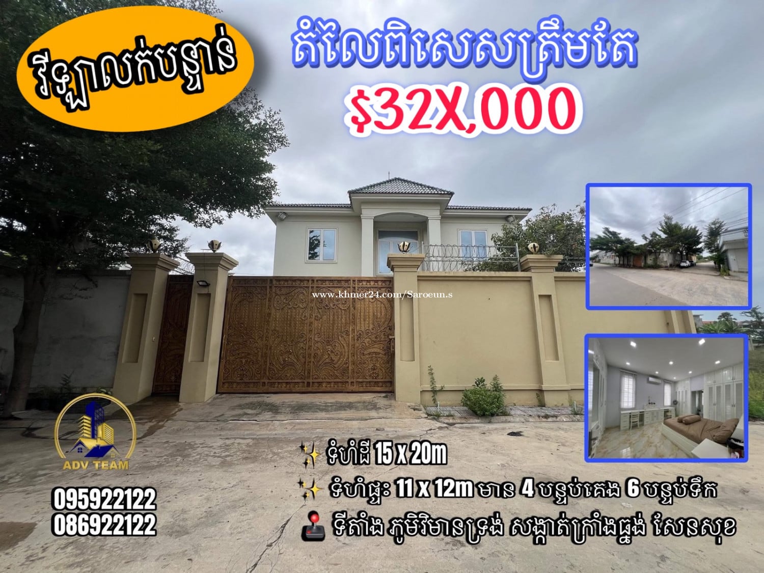 🏦វីឡាលក់បន្ទាន់ ស្ថិតនៅតំបន់ក្រាំងធ្នង់ជិតផ្សារឈូកមាស លក់ក្នុងតំលៃត្រឹមតែ $323,000 ចរចារ ✨ ទំហំផ្ទះ 11 x 12m ប្លង់សេ 2សន្លឹក ✨ មាន 4បន្ទប់គេង 6បន្ទប់ទឹក ✨ ទំហំដី 15 x 20m ➡️ កាត់ឈ្មោអជូនប្លង់រឹង 👉 ថែមជួនគ្រឿងសង្ហារឹម : វាំងនន ម៉ាស៊ីនត្រជាក់ ទូខោអាវ តុ ទូ សាឡុង និងសម្ភារះជាច្រើន… 🕹️ ទីតាំង : ភូមិវិមានទ្រង់ ច្រកចូលបុរីមហាសែនសុខ សង្កាត់ក្រាំងធ្នង សែនសុខ ភ្នំពេញ តំបន់អូរអរ ជិតផ្សារ សាលារៀន… ងាយស្រួលរស់នៅ ☎️ 095922xxxClick To Call Code: V-00035 Channel: https://t.me/saroeun_avd