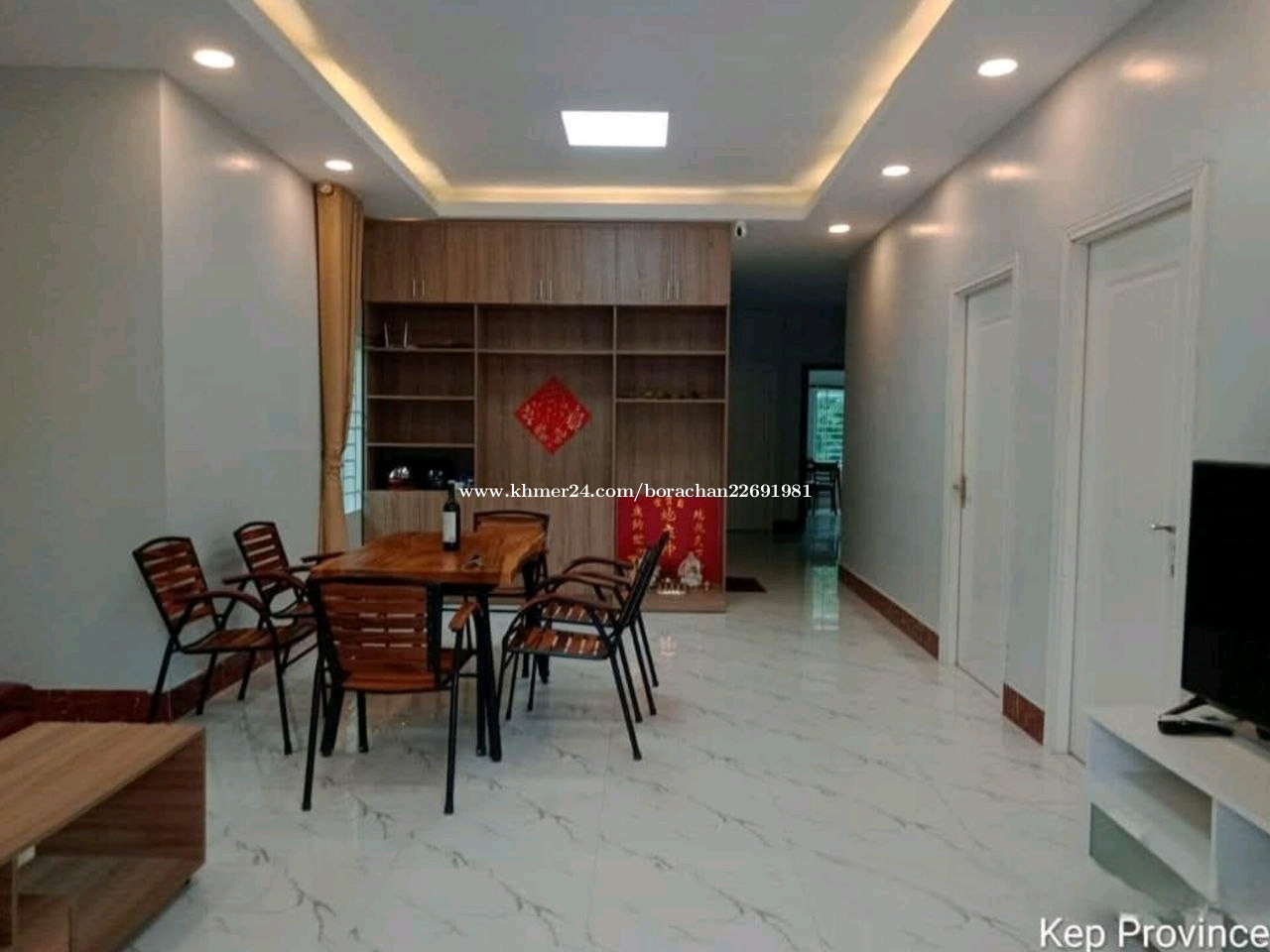 វីឡាលំហែកណ្តាលក្រុងកែប ជិតផ្លូវជាតិ ជិតសមុទ្រត្រឹមតែ200m ទេសភាពព័ទ្ធជុំវិញដោយភ្នំនិងសមុទ្រ ផ្ទះស្អាត មានគ្រឿងសង្ហារឹមពេញ លក់បន្ទាន់ម្លៃពីមុន 480,000$ អីលូវលក់តែ 399,000