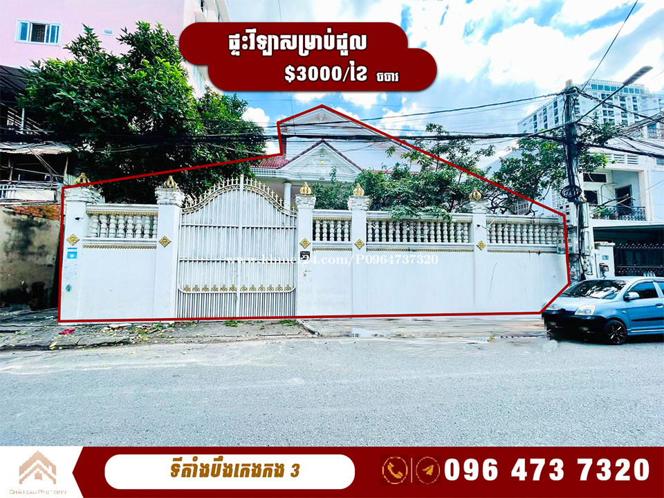 *តំម្លៃ | Price: $3,000/ខែ *ទំហំដី | Land size: 17m x 33m *ទំហំផ្ទះ | House size: 14m x 24m *ជាន់ | Floor: 3 *បន្ទប់គេង | Bedroom: 7 *បន្ទប់ទឹក | Bathroom: 6 *ទីតាំង | Location: បឹងកេងកង 3 __________________________ Property Code: (3197)