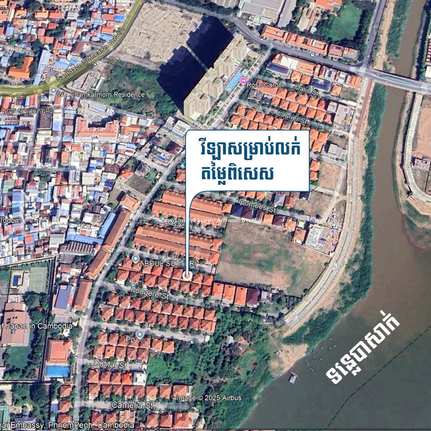Location: ក្នុងបុរីឧទ្យានបាសាក់ សង្កាត់ទន្លេបាសាក់, ខណ្ឌចំការមន. រាជធានីភ្នំពេញ. Tonle Basak, Chamkar Mon, Phnom Penh