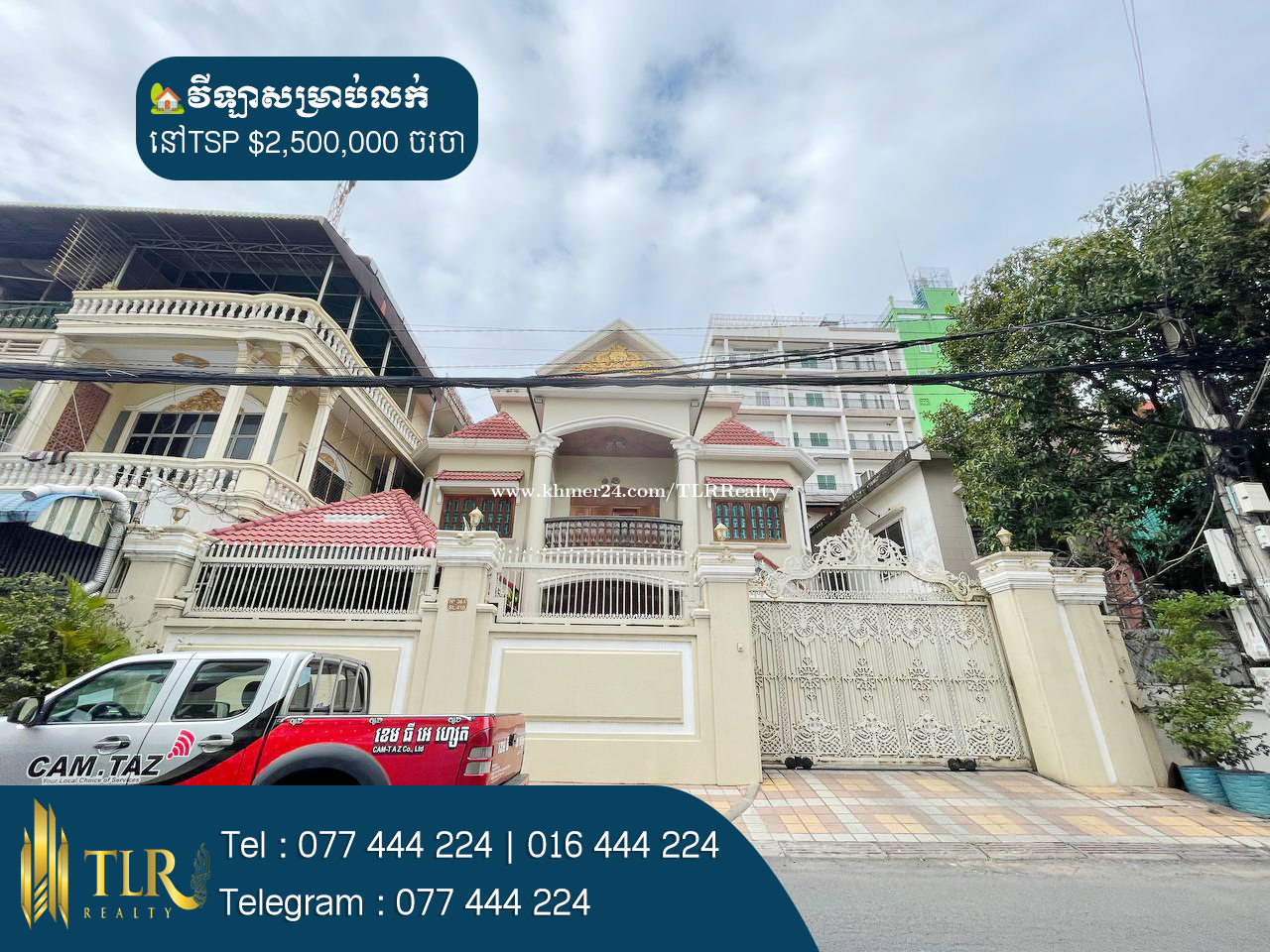 🏡វីឡាសម្រាប់លក់ | Villa for Sale 💲តម្លៃលក់ | Price Sale : $2,500,000 ចរចា - ទំហំផ្ទះសរុប | House Size : 211.54 sqm - ទំហំដី | Land size : 15m x 26m - បន្ទប់គេង | Bedroom : 8 - បន្ទប់ទឹក | Bathroom : 8 - ផ្ទះបាយ | Kitchen : 2 (ខាងក្នុង ១ ខាងក្រៅ ១ ) - បន្ទប់ទទួលភ្ញៀវ | Livingroom : 1 - ផ្ទះបែរទៅទិសខាងត្បូង | Facing south. 📍ទីតាំងស្ថិតនៅក្នុង សង្កាត់បឹងត្របែក ខណ្ឌចំការមន រាជធានីភ្នំពេញ | Location in Phnom Penh. # អត្តលេខអាជ្ញាប័ណ្ណ : E-24-449 📞 Cellcard : 077444xxxClick To Call 📞 Smart : 016444xxxClick To Call 📞 Metfone : 066444xxxClick To Call 📱 Telegram : 077444xxxClick To Call 📱 Channel telegram : https://t.me/RithyTLR