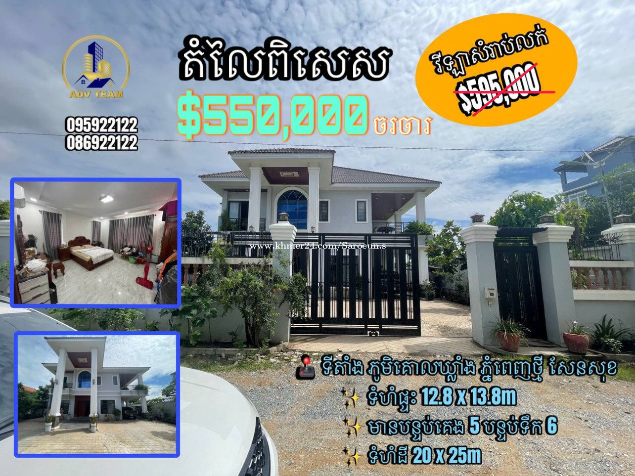 🏦វីឡាស្រស់ស្អាត ស្ថិតនៅតំបន់ភ្នំពេញថ្មី ជិតផ្សារ សាលារៀន មន្ទីរពេទ្យ និងមានបរិយាកាសល្អ មានសុវត្ថិភាពងាយស្រួលនៅក្នុងការរស់នៅ… ➡️ លក្ខណៈផ្សេងៗនៃផ្ទះ៖ ✨ ទំហំផ្ទះ 12.8 x 13.8m ប្លង់សេ 1សន្លឹក ✨ មាន5បន្ទប់គេង 6បន្ទប់ទឹក និងបន្ទប់ស្តុកអីវ៉ាន់1 (សរុប6បន្ទប់) ✨ ទំហំដី 20 x 25m ✨ សល់ដីមុខផ្ទះ 10m ខាងស្តាំ 5m ខាងឆ្វេង 2m ក្រោយផ្ទះ 1m ➡️ កាត់ឈ្មោអជូនប្លង់រឹង 👉 ថែមជួនគ្រឿងសង្ហារឹម : ម៉ាស៊ីនត្រជាក់ 5គ្រឿង ចង្ក្រានហ្គាស់ 1 ម៉ាស៊ីនទីកក្តៅ 4 គ្រែ 2ឈុត ទូខោអាវ ទូតាំងទូរទស្សន៍… 🕹️ ទីតាំង : ភូមិគោកឃ្លាំង សង្កាត់ភ្នំពេញថ្មី សែនសុខ ភ្នំពេញ… ☎️ 095922xxxClick To Call Code: V-00032 Channel: https://t.me/snrealestate