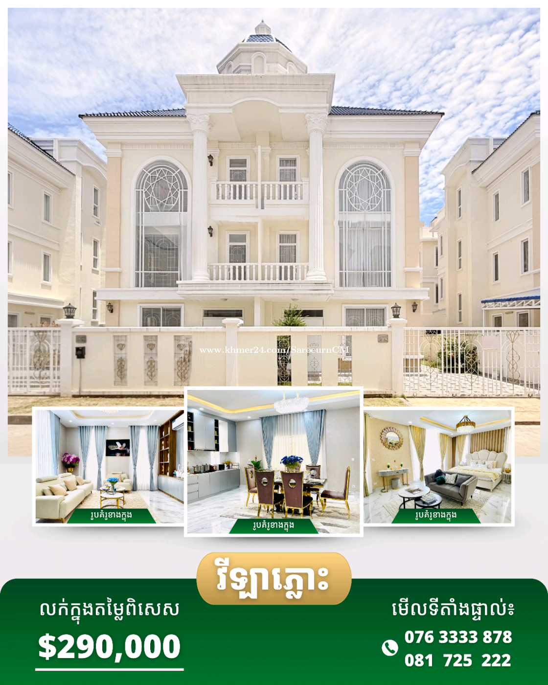 វីឡាភ្លោះ ខ្នាតធំទូលាយ (Twin Villa) ម៉ូដថ្មីប្រណីត ទំនើបទាន់សម័យ ទិញភ្លាមចូលនៅភ្លាម មានប្លង់រឹងស្រាប់។ 🔸️ លក់តម្លៃ $290,000 🔸️ ទំហំដី 10m x 21m 🔸️ ទំហំផ្ទះ 7m x 12.5m 🔸️ បន្ទប់គេង 4 🔸️ បន្ទប់ទឹក 6 🔸️ ចំណតឡាន 2 🔸️ សំណង់3ជាន់ ប្លង់សេដំបូលអាចប្រើប្រាស់បាន 📍ទីតាំងជិតល្អ ខាងជ្រោយចង្វារ នៅបុរីប៊្លូដាយមិនដ៍ Borey Blue Diamond ក្បែរតំបន់មាត់ទន្ល ដែលនាំមកនូវផាសុកភាព ភាពសុីវិល័យ និងការរស់នៅប្រកបដោយសុភមង្គល គុណភាពសំណង់រឹងមាំខ្លាំង។ ព័ត៌មានលម្អិត៖ ☎️(Cellcard): 0763333xxxClick To Call ☎️(Smart) : 081725xxxClick To Call 📩 Facebook: m.me/CMpropertychroychangvar 📲 Telegram: https://t.me/CMPropertyChroyChangvar