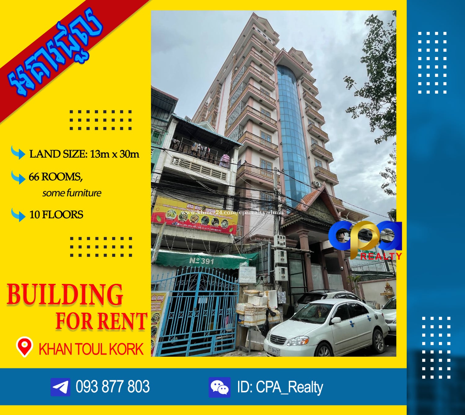 សណ្ឋាគារជួលម្តុំផ្សារដេប៉ូ ⭕️ទំហំដី: 13m x 30m ⭕️តម្លៃជួល: $10,000/1ខែ ⭕️កំពស់១០ជាន់, មាន៦៦បន្ទប់, មានសម្ភារៈមួយចំនួន 📌ទីតាំង: សង្កាត់ផ្សារដេប៉ូ, ខណ្ឌទួលគោក 🆔00869 ☎️𝟎𝟗𝟑 𝟖𝟕𝟕 𝟖𝟎𝟑 👍𝙩𝙚𝙡𝙚𝙜𝙧𝙖𝙢: https://t.me/cparealtors