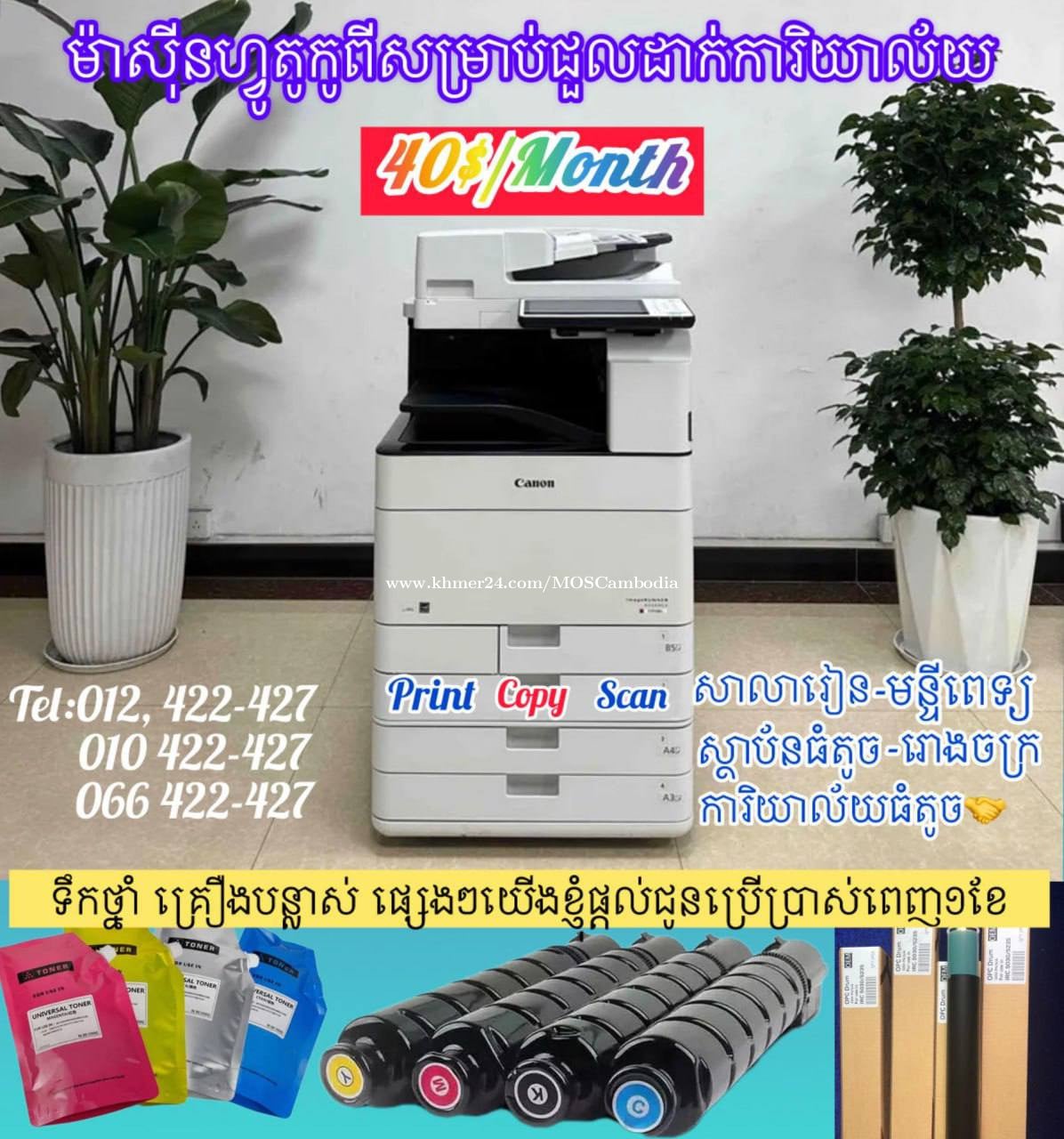 *ការផ្តល់ជូន ពីការជួលហ្វូតូកូបពី * មានម៉ាស៊ីនហ្វូតូកូបពី១គ្រឿង (តាមតម្រូវការ ) * ក្នុង១ខែអាចប្រើប្រាស់បាន 1500ផេក * កូបពី ព្រី កូល័រ)A3,A4,A5 * ដឹកជញ្ជូប ដល់ទីតាំង (ហ្វ្រី) * IT តម្លើងព្រីនស្កែន( ហ្វ្រី) * ទឹកថ្នាំ គ្រឿងបន្លាស់ផ្សេងៗ (ហ្វ្រីគ្រប់មុខ) * បញ្ចុះតម្លៃ50%(តម្លៃដើមខែទី១) * សូមបញ្ចាក់ថា ក្រដាស់សម្រាប់ព្រីនឯកសារ ខាងយើងមិនផ្តល់ជូនទេ