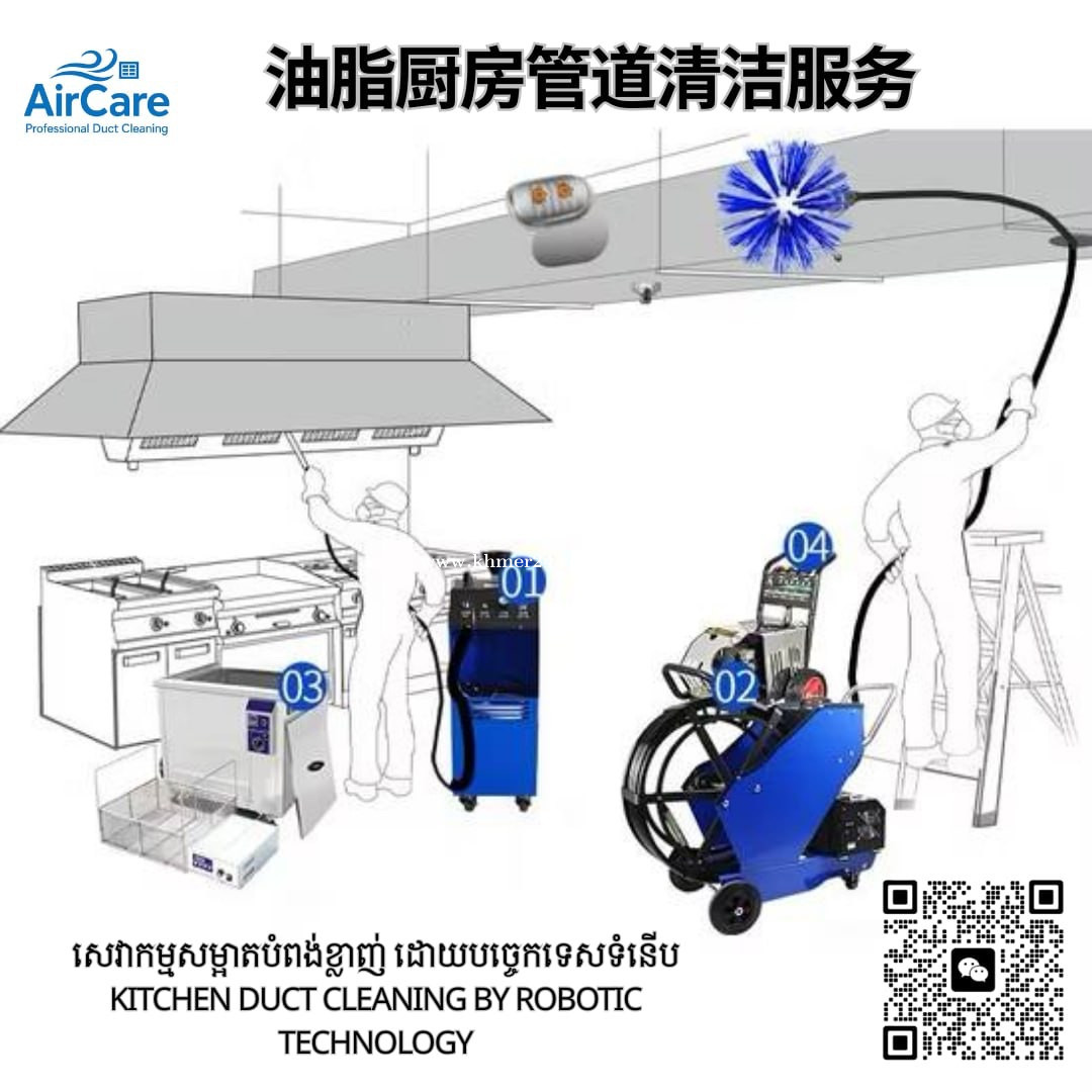 ជំនាញសម្អាតបំពង់ខ្លាញ់ hood duct cleaning ដោយម៉ាសុីន Robo ពីអឺរ៉ុប