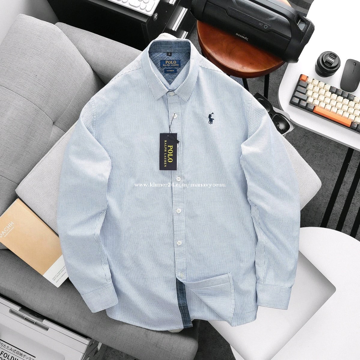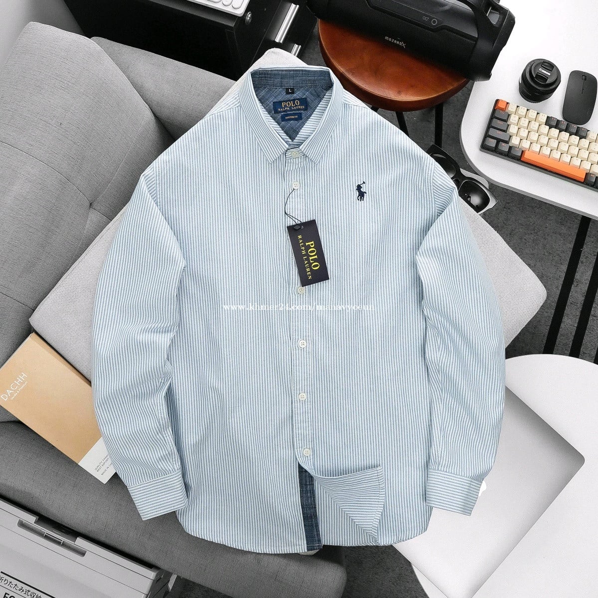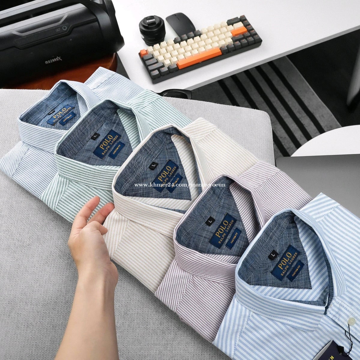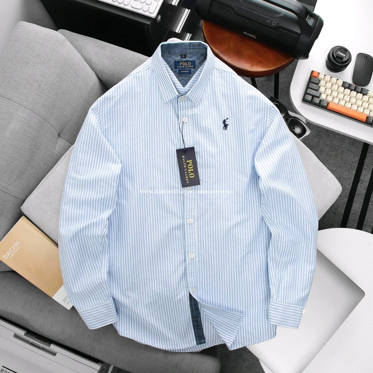 អាវបុរសអាវសាច់ក្រណាត់ ឆ្នូត តូចៗ ដៃវែង ប្រេន po lo ម៉ូតពណ៌ដូចរូប លេខ អាវ M l xl xxl (50kg-88kg) ពិតជាសង្ហារពាក់បានគ្រប់កម្មវិធី