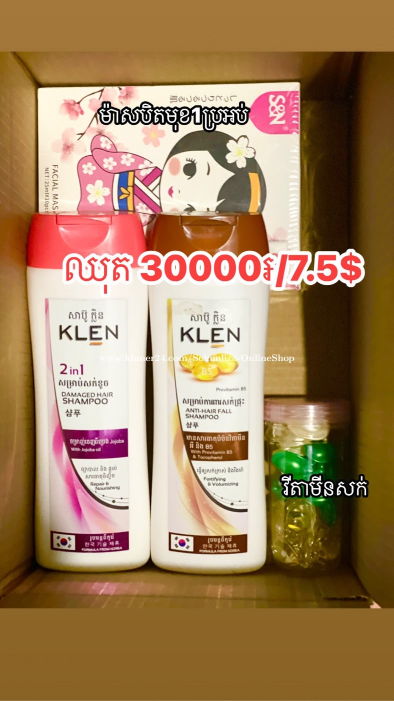 ថែមម៉ាសបិតមុខ1ប្រអប់ និងវីតាមីនសក់ 30គ្រាប់