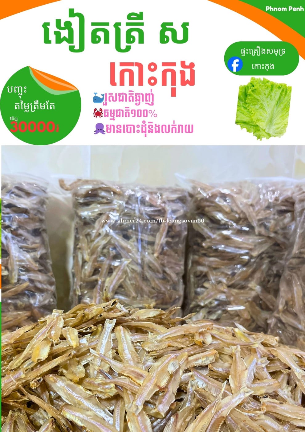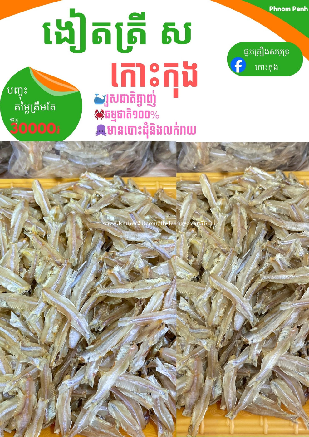 សួរស្តីបងប្អូនទាំងអស់គ្នា សម្រាប់🐟 ងៀតត្រី ស 🐟ខាងប្អូន មានលក់ហើយ ១គីឡូ ៣០០០០៛ ✅ គុណភាពល្អ ✅ រសជាតិឆ្ងាញ់ ✅ អនាម័យ 📞 ចង់ឆាតសាកសួរ សូមទំនាក់ទំនងមកប្អូនបានចា៎❤️🥰 📲Telegram: 0883488xxxClick To Call 📞 ទូរសព្ទ័: 0883488xxxClick To Call #បោះដុំនិងលក់រាយ25ខេត្តក្រុង #ផ្ទះគ្រឿងសមុទ្រកោះកុង #ផលិតផលក្នុងស្រុក #ផលិតផលខ្មែរ #ត្រីងៀត