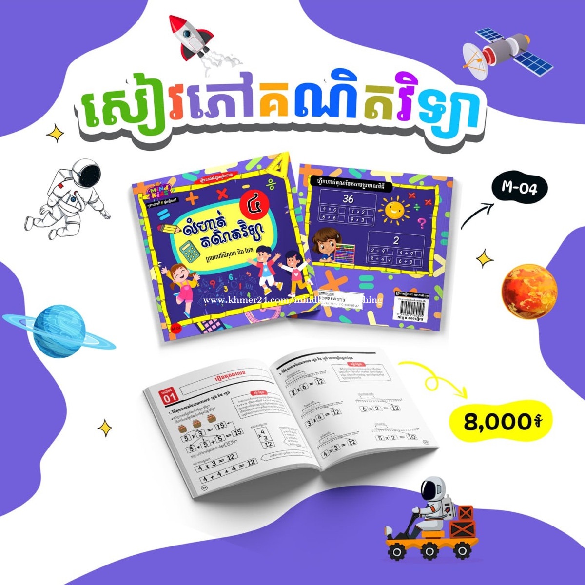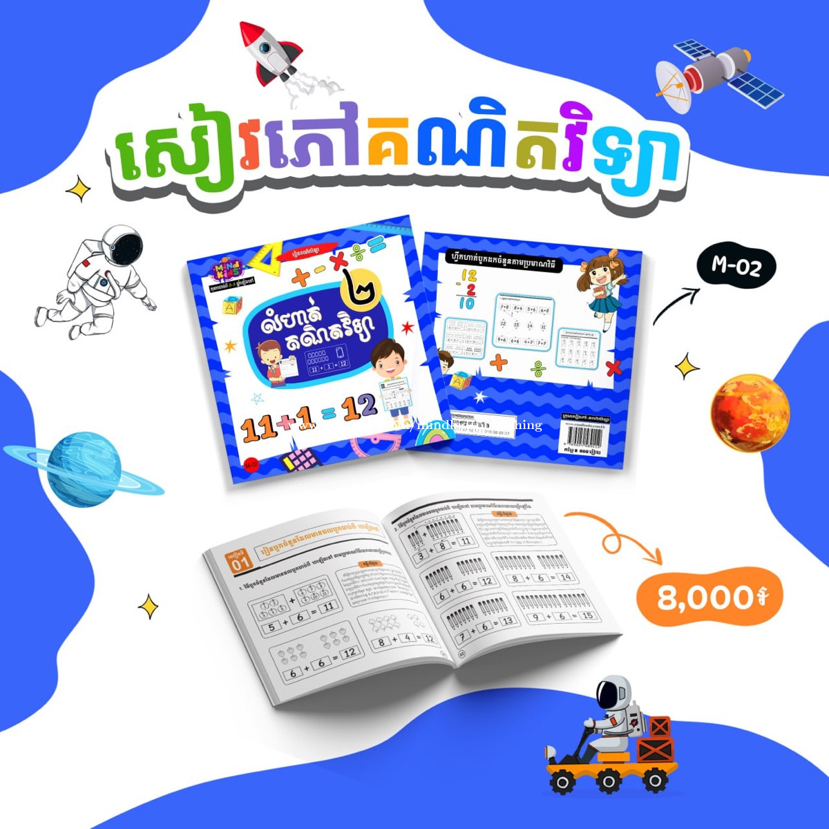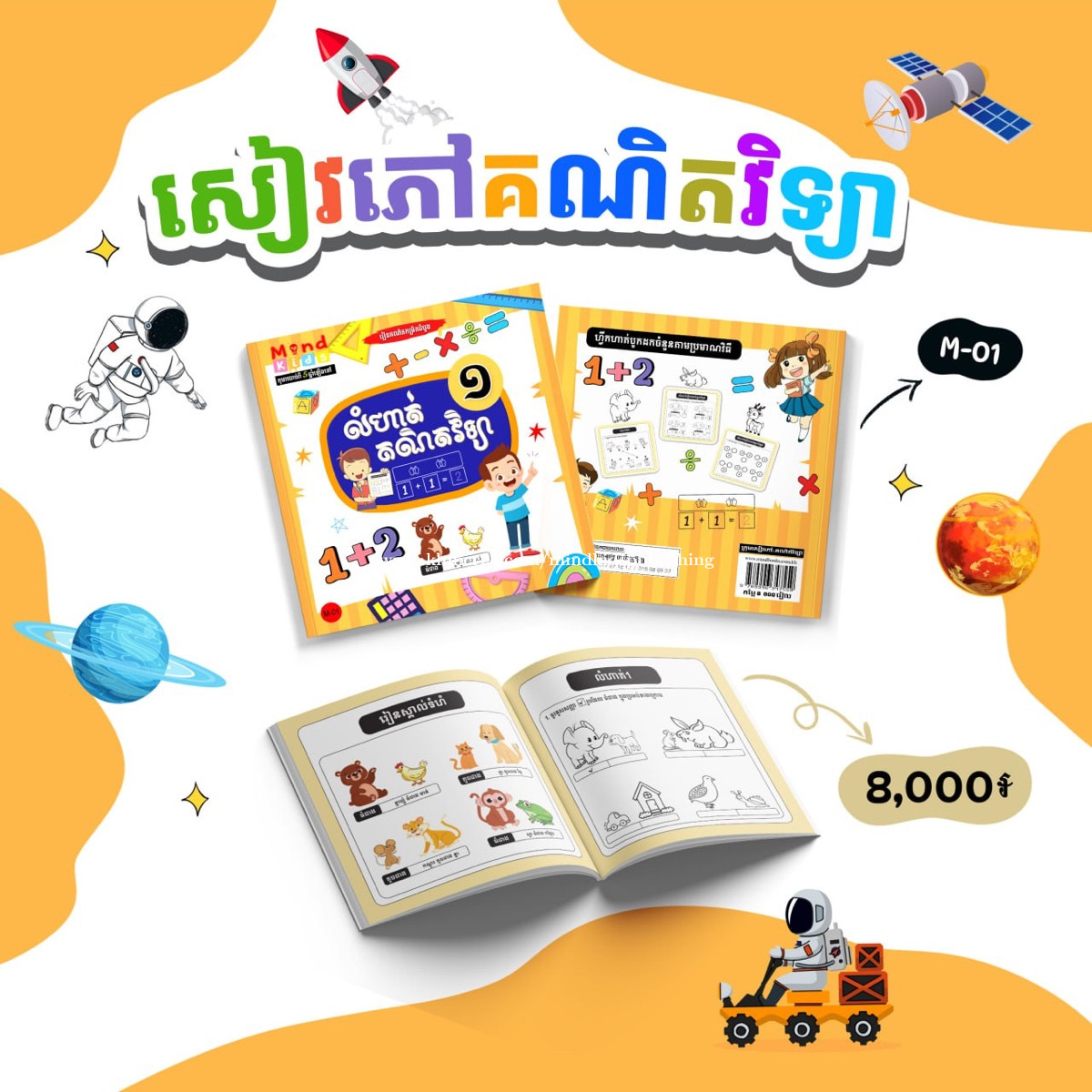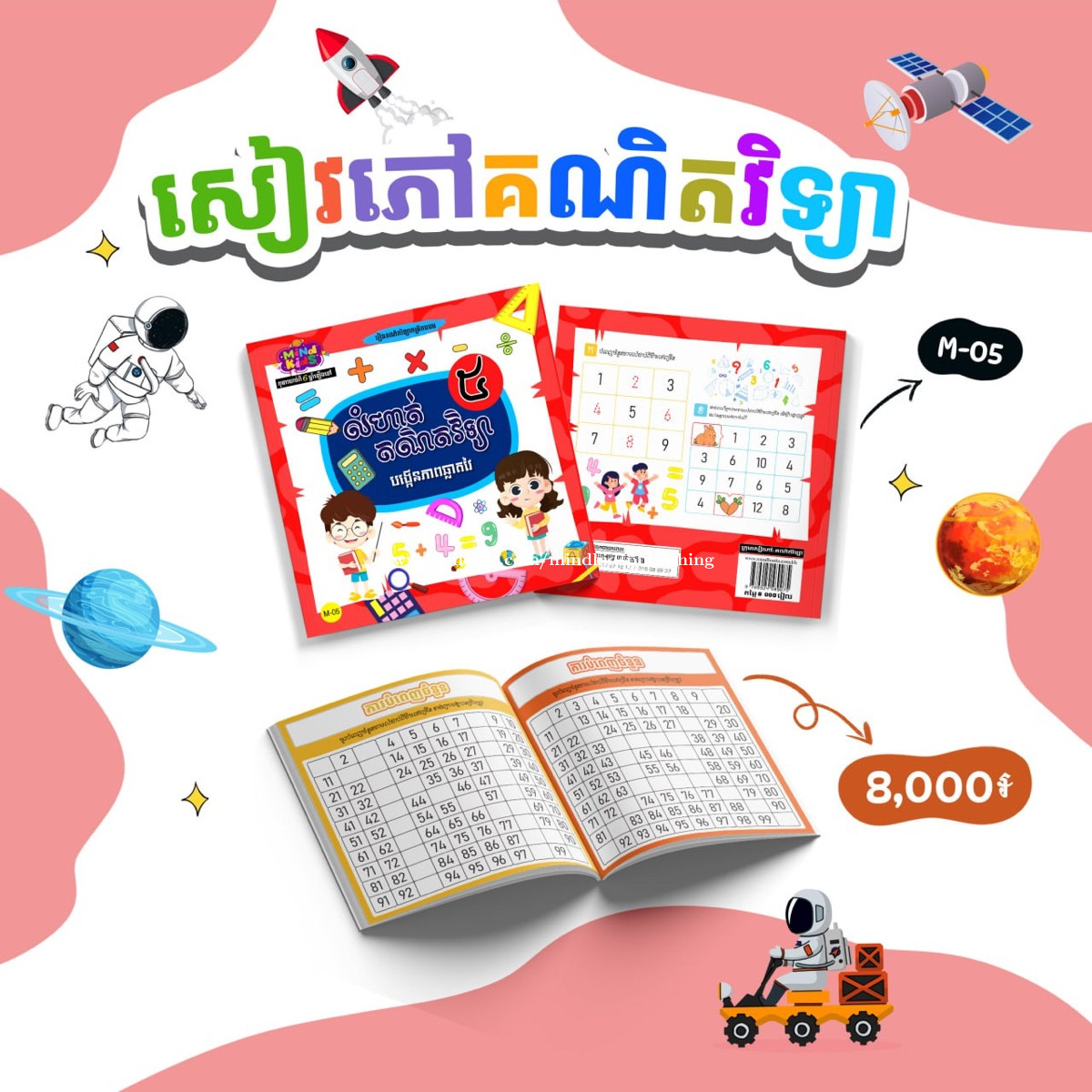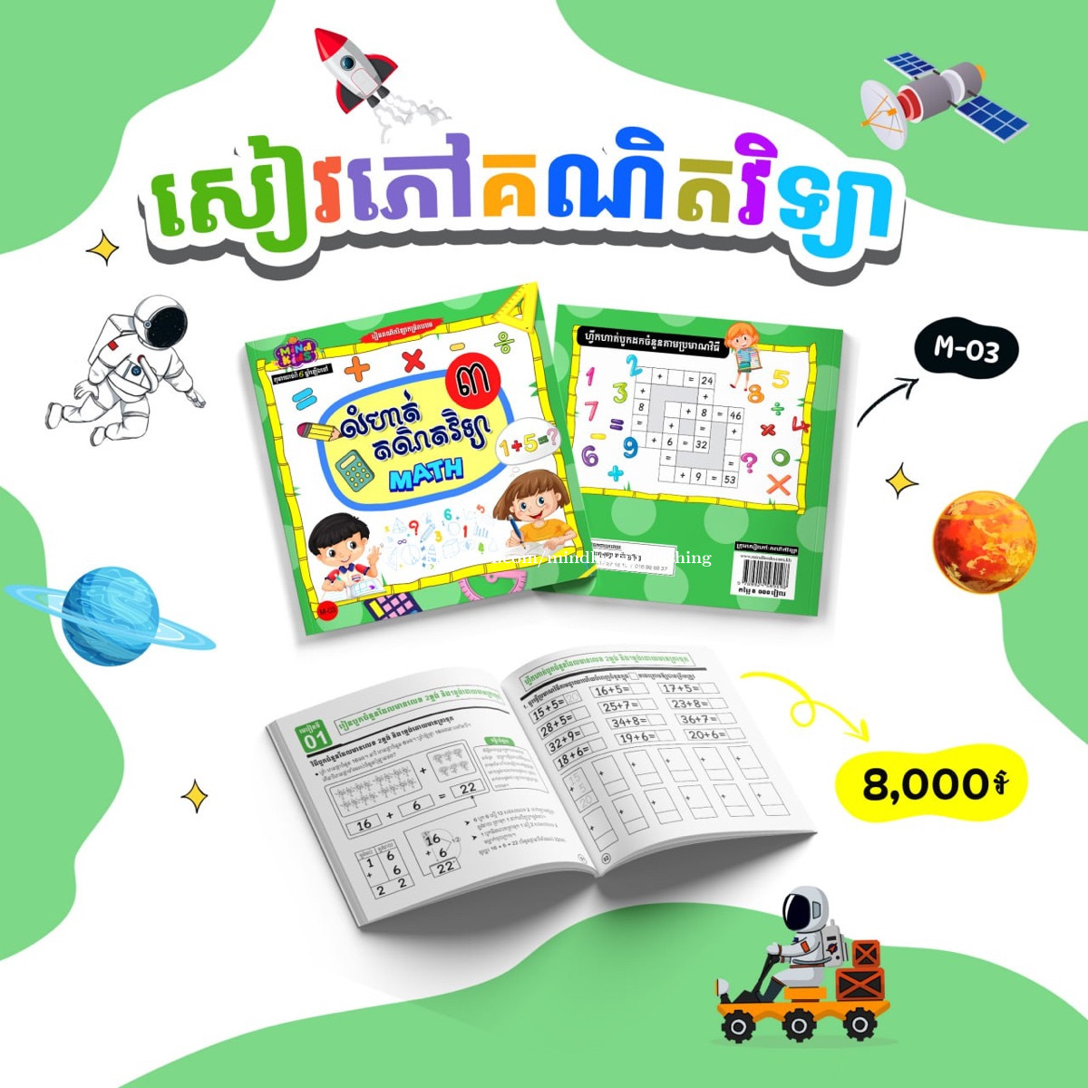 * សៀវភៅលំហាត់គណិតវិទ្យា ជាផ្នែកមួយសំខាន់នៃគណិតវិទ្យា ដែលជួយកុមារយល់ដឹងពីគំនិតមូលដ្ឋាននៃចំនួន ការរៀបចំ និងការតភ្ជាប់វត្ថុ។ វាជួយកុមារជាច្រើនផ្នែក ដូចជា៖ - ជួយបង្រៀនឲ្យគិតយ៉ាងច្បាស់លាស់ និងមានរចនាសម្ព័ន្ធ - កុមារយល់ពីការបែងចែក និងសមាសភាពរបស់ចំនួនតាមរយៈឈុតជួយពង្រឹងគំនិតចំនួន - ឈុតគឺជាគ្រឹះសំខាន់សម្រាប់មុខវិជ្ជាគណិតវិទ្យាផ្សេង - ពង្រឹងការគិតប្រព័ន្ធនិងដាក់ចំណាត់ថ្នាក់ កុមាររៀនតម្រៀបវត្ថុ និងចំណាត់ថ្នាក់ដោយប្រើឈុតជួយបង្រៀនពីការអប់រំតាមរយៈការអនុវត្ត។ 🥰📚📕📝 ☎️ 016988xxxClick To Call 👉 https://t.me/MINDBOOKS_SHOP 📍សូមចុចផែនទី: MIND BOOKS (TK) https://maps.app.goo.gl/zfQ4kjpFDSSHkFRw8?g_st=ic