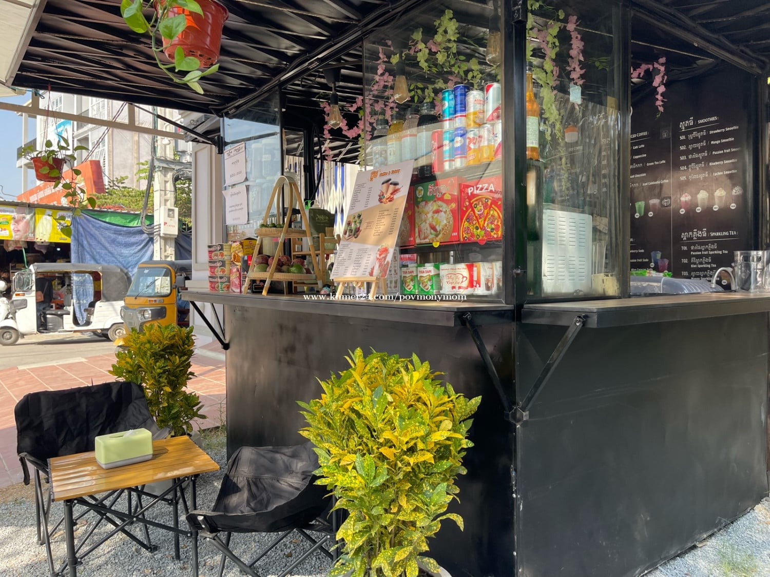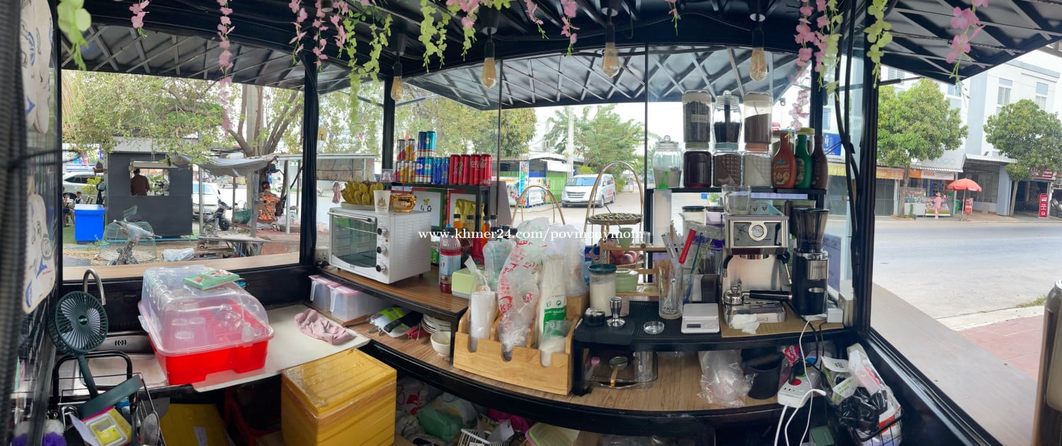 មានសម្ភារមួយឈុត ថ្មីទាំងអស់ បើកលក់បានតែម្តង ក្បែលផ្សាឈូកវ៉ា1 សាលារៀនច្រើន មនុស្សច្រើនអ៊ូអរ មូលហេតុហេតុម្ចាស់ត្រូវទៅរៀនបន្ត គ្មានអ្នកមើលការខុសត្រូវ។ (តម្លៃ5500$) ចចារបានខ្លះ
