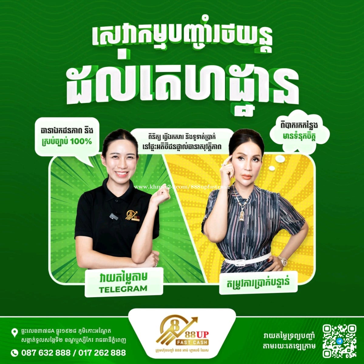 សេវាកម្មបញ្ចាំរថយន្តពិសេស! ចុះទៅដល់គេហដ្ឋានរបស់លោកអ្នក! ✨ ត្រូវការប្រាក់បន្ទាន់ តែពិបាករកកន្លែងដែលមានទំនុកចិត្តមែនទេ? មកទីនេះ! យើងផ្តល់ជូនដំណោះស្រាយដ៏ល្អបំផុត៖ ✅ សេវាកម្មចុះដល់ទីកន្លែង៖ ក្រុមការងារយើងចុះទៅពិនិត្យ រៀបចំឯកសារ និងទូទាត់ប្រាក់នៅផ្ទះរបស់លោកអ្នកផ្ទាល់។ ✅ សុវត្ថិភាព ១០០%៖ ធានាឯកជនភាព និងភាពស្របច្បាប់ត្រឹមត្រូវ។ 📲 វាយតម្លៃរថយន្តតាម Telegram ឥឡូវនេះ៖ 👉 t.me/x888upfashcash 📌អាសយដ្ឋាន/Address: House 378A, St. 1928, Koh Andet Village, Toul Sangke 2 Commune, Russey Keo District, Phnom Penh. 📍ទីតាំងហាង/Location : GOOGLE MAP 📲ព័ត៌មានបន្ថែម/More info click here : CHANNEL 📈វាយតម្លៃចុចទីនេះ/Quick assessment click here: TELEGRAM 🌐Website: 888UPFC.COM ☎️ Tel : 087632xxxClick To Call / 017262xxxClick To Call #PawnShop #888UpFastCash #PawnShopFinds #LowInterestRate