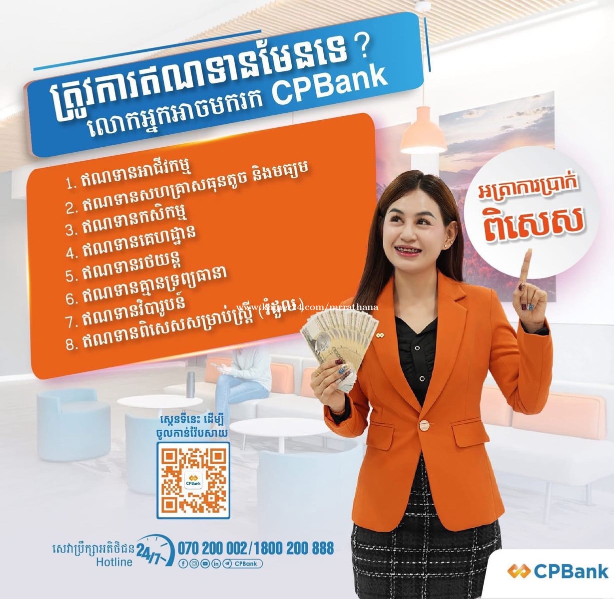 🙏🏻🙏🙏🏽ជំរាបសួរពុកម៉ែបងប្អូនជាទីគោរព! 🧑🏻💻ប្អូនជាអ្នកប្រឹក្សាសេវាកម្មផ្តល់ប្រាក់កម្ចី ធនាគារ ប្រៃសណីយ៍កម្ពុជា សាខា(ខណ្ឌមានជ័យ-សង្កាត់ស្ទឹងមានជ័យទី១) សូមជំរាបពីប្រូម៉ូសិនផ្តល់ប្រាក់កម្ចីជូនពុកម៉ែបងប្អូនដូចខាងក្រោម: 1. ទំហំកម្ចីឥណទានពី$5,000រហូតដល់ $5,000,000 2. អត្រាការប្រាក់រហូតដល់ 0.66%ក្នុង១ខែ 3. ផ្តល់រយះពេលបានរហូតដល់ 20ឆ្នាំ 4. ទទួលយកប្លង់រឹង និងប្លង់ទន់ 5. មានសេវាកម្មបង់ផ្តាច់ពីធនាគារផ្សេងៗ មិនគិតថ្លៃសេវា 6. គ្មានកម្រៃសេវារដ្ឋបាល 7. ផ្តល់សេវាកម្មកម្ចីងាយស្រួល លឿន រហ័សទាន់ចិត្តប្រកបដោយភាពស្មោះត្រង់ និងជឿទុកចិត្តបាន #ប្រសិនពុកម៉ែបងប្អូនមានតម្រូវការ សូមទំនាក់ទំនងមកកាន់ប្រព័ន្ធខាងក្រោម:👇 Tell: 010414xxxClick To Call Smart Telegram សូមអរគុណ🙏🙏🏻🙏🏽