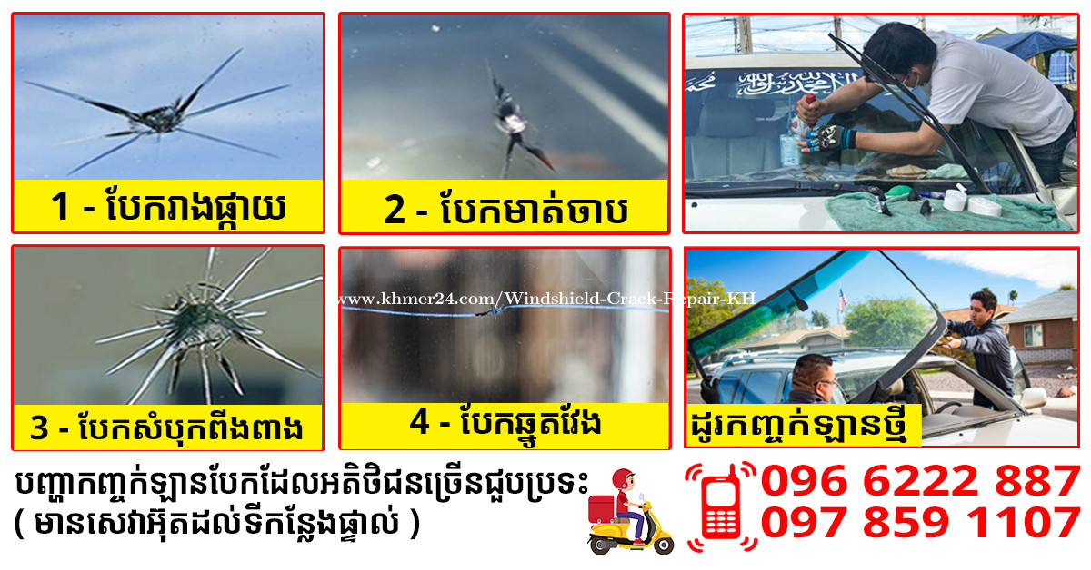 សេវាកម្មអ៊ុតកញ្ចក់ឡានបែកប្រេះស្រាំ និង បិត UV ការពារកំដៅថ្ងៃ ( Windshield Repair, UV Protection Sticker ) អត្ថប្រយោជន៍គឺ៖ ១-ទប់មិនអោយកន្លែងបែករាលដាលទៅមុខទៀតបាន 90% ២-លុបស្នាមបែកនៅសល់តូចជាងមុនចន្លោះពី 50% ដល់ 90% បើអតិថិជនមានបញ្ហាកញ្ចក់រថយន្តបែកប្រេះស្រាំ សូមទំនាក់ទំនងតាមលេខ៖ 0966222xxxClick To Call / 0978591xxxClick To Call / 017575xxxClick To Call(មានសេវាអ៊ុតដល់ទីកន្លែង) -មានសេវាអ៊ុត UVការពារកំដៅថ្ងៃក្នុងរថយន្ត និងកញ្ចក់ផ្ទះឬអាគារ -មានសេវាដូរកញ្ចក់រថយន្តថ្មីតម្លៃសមរម្យ #អ៊ុតកញ្ចក់ឡាន #អ៊ុតកញ្ចក់រថយន្ត #ជាងអ៊ុតកញ្ចក់,#ជំនាញអ៊ុតកញ្ចក់ឡាន #ជាងអ៊ុតកញ្ចក់រថយន្តបែក #ជំនាញអ៊ុតកញ្ចក់រថយន្តបែកប្រេះស្រាំ