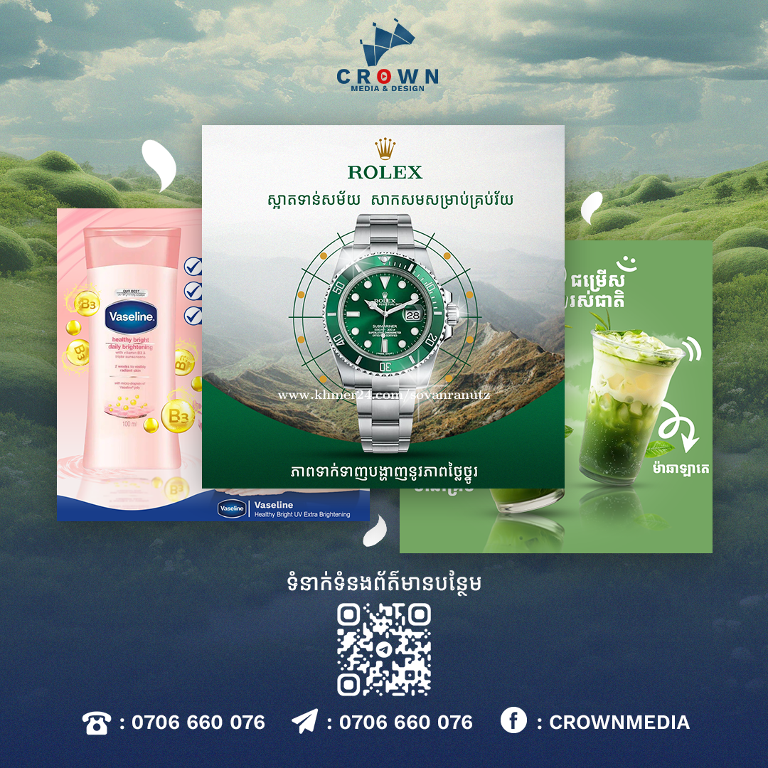 មានទទួលទាំងសេវាកម្ម រចនាផ្ទាំងផ្សព្វផ្សាយ និងវីដេអូ ជាមួយនិងតម្លៃសមរម្យ Our Service Serve with : Poster Design & Video Motion with affordable Price. Contact us via:https://t.me/CrownmedianDesign Tel: 015379xxxClick To Call / 0766600xxxClick To Call