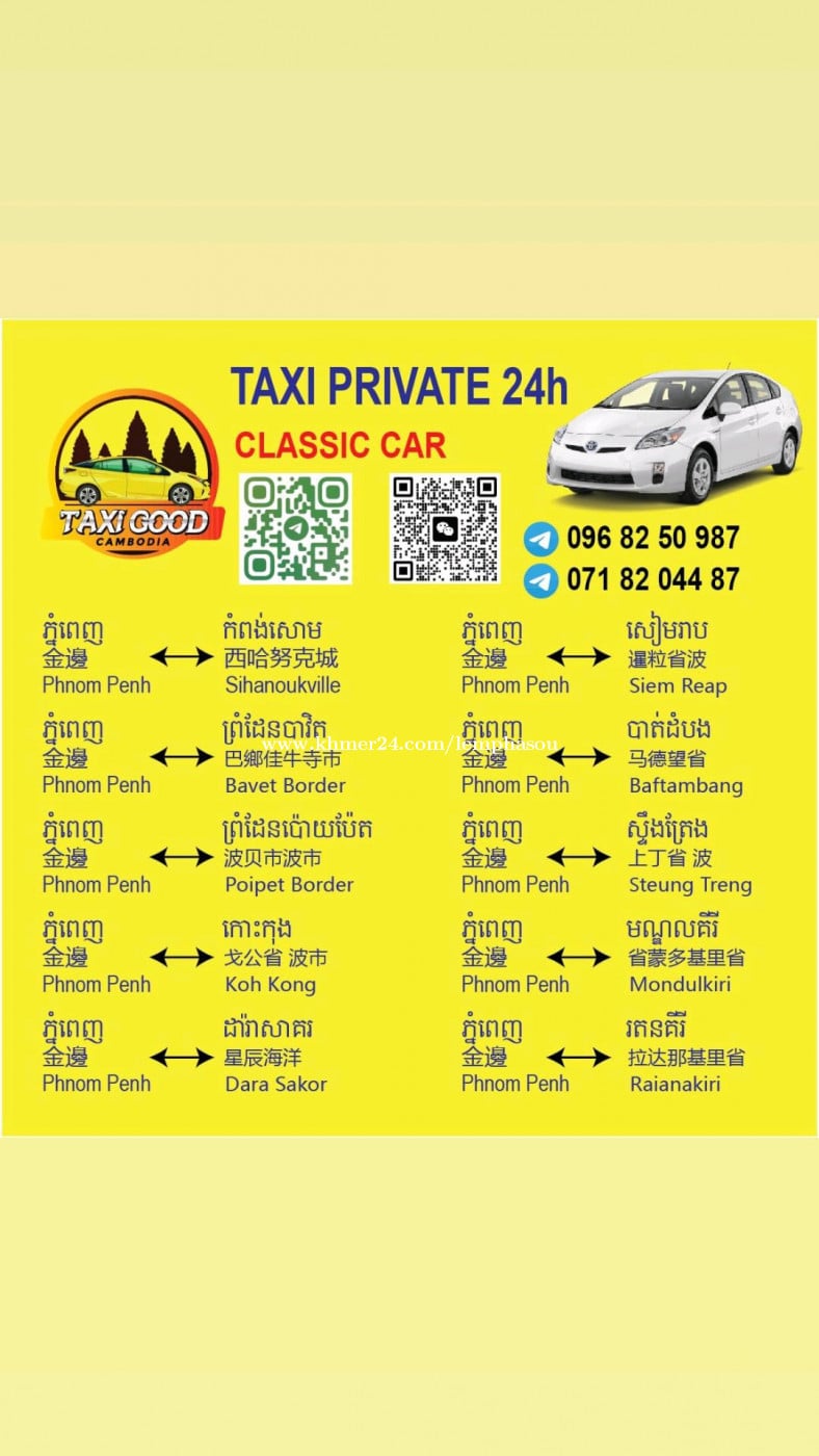 សេវាកម្ម Taxi Private 24h 25ខេត្តក្រុង