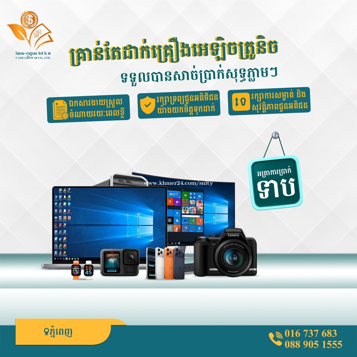 ក្រុមហ៊ុន បញ្ចាំស្របច្បាប់ ឃែសហ្គ្រោស៦៨ ឯ.ក ដែរមានអាជ្ញាប័ណ្ណពីក្រសួងត្រឹមត្រូវ ខាងយើងមានទទួលបញ្ចាំ រថយន្ត នឹងឯកសាររថយន្តគ្រប់ប្រភេទ គ្រឿងអេឡិចត្រូនិចជាមួយការការ ប្រាក់សមរម្យ ទទួលបានតម្រូវការខ្ពស់។ សម្រាប់ពត៌មានលម្អិត ☎️0889280xxxClick To Call / 077977xxxClick To Call / 016737xxxClick To Call