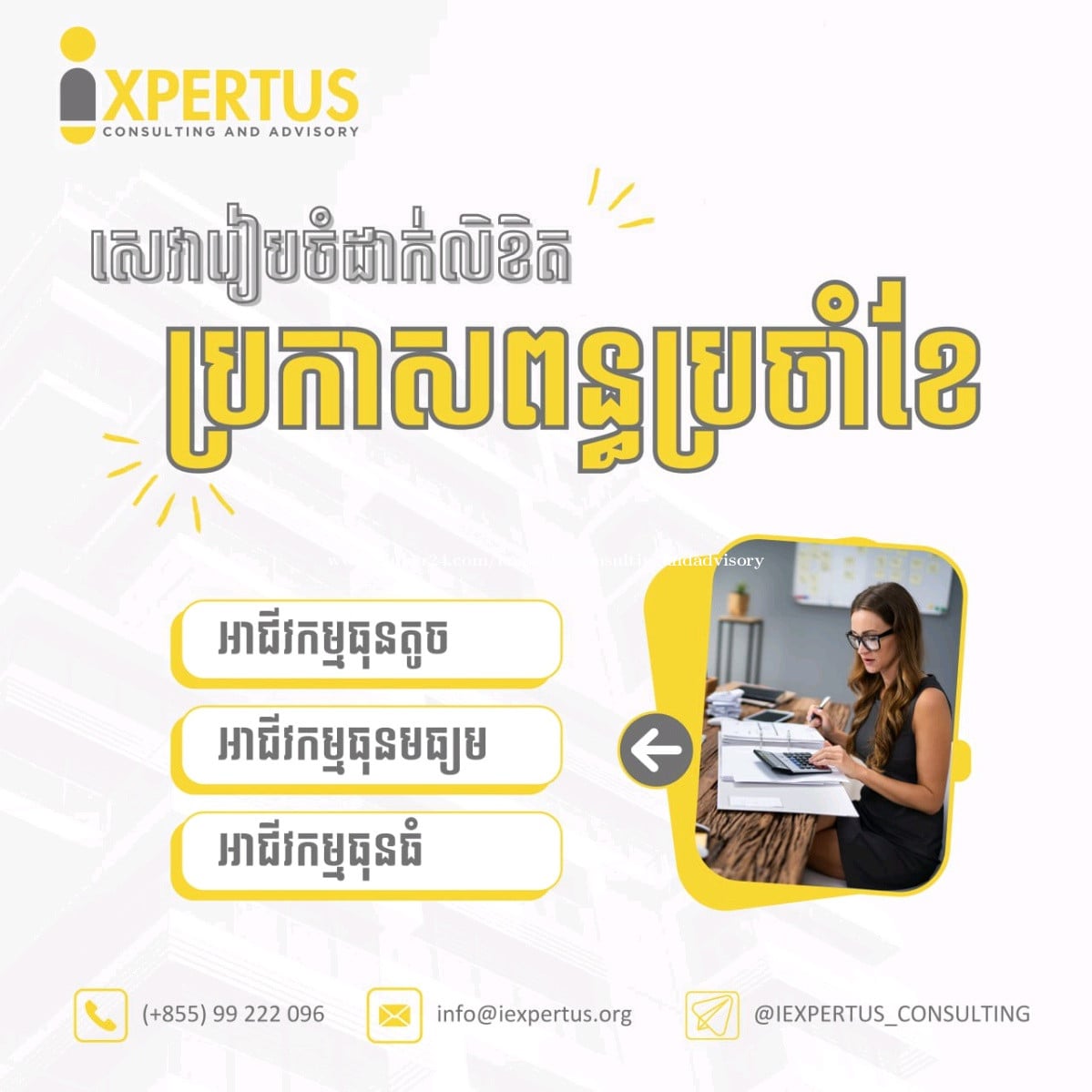 📌 តើលោកអ្នកកំពុងស្វែងរកអ្នកជំនាញ ដើម្បីប្រឹក្សាអំពីកាតព្វកិច្ចក្នុងការប្រកាស និងបង់ប្រាក់ពន្ធប្រចាំខែសម្រាប់អាជីវកម្មលោកអ្នកមែនទេ??? ✅ ប្រឹក្សាជាមួយអ្នកជំនាញរបស់យើង ដែលមានការទទួលស្គាល់ពីអគ្គនាយកដ្ឋានពន្ធដារ ដើម្បីធានាបាននូវការប្រកាសពន្ធបានទាន់ពេលវេលា និងត្រឹមត្រូវ ព្រមទាំងការពារអាជីវកម្មរបស់លោកអ្នក ពីការរងពិន័យ និងទោសទណ្ឌផ្សេងៗ ដែលបណ្តាលមកពីការប្រកាសពន្ធមានការយឺតយ៉ាវ ឬមិនបានត្រឹមត្រូវ។ សេវាកម្មប្រកាសពន្ធប្រចាំខែរបស់យើង រួមមាន៖ ➡️ ប្រាក់រំដោះពន្ធលើប្រាក់ចំណូល ➡️ អាករលើតម្លៃបន្ថែម ➡️ អាករជំនួសលើសេវាឌីជីថល ➡️ ពន្ធកាត់ទុក ➡️ ពន្ធលើប្រាក់បៀវត្ស ➡️ ពន្ធលើអត្ថប្រយោជន៍បន្ថែម ➡️ អាករស្នាក់នៅ ➡️ អាករបំភ្លឺសាធារណៈ ➡️ អាករពិសេស 📌 Looking for tax experts to consult on the monthly tax declarations and payments obligation for your business??? ✅ Consult with our certified tax agent—recognized by the General Department of Taxations—to ensure timely and accurate compliance, and to protect your business from fines and penalties caused by late or incorrect filings. Our monthly tax declaration services include: ➡️ Prepayment of Tax on Income (PToI) ➡️ Value Added Tax (VAT) ➡️ VAT Reverse Charge on E-Commerce Transactions (VRC) ➡️ Withholding Tax (WHT) ➡️ Tax on Salary (ToS) ➡️ Fringe Benefit Tax (FBT) ➡️ Accommodation Tax (AT) ➡️ Public Lighting Tax (PLT) ➡️ Specific Tax (ST)