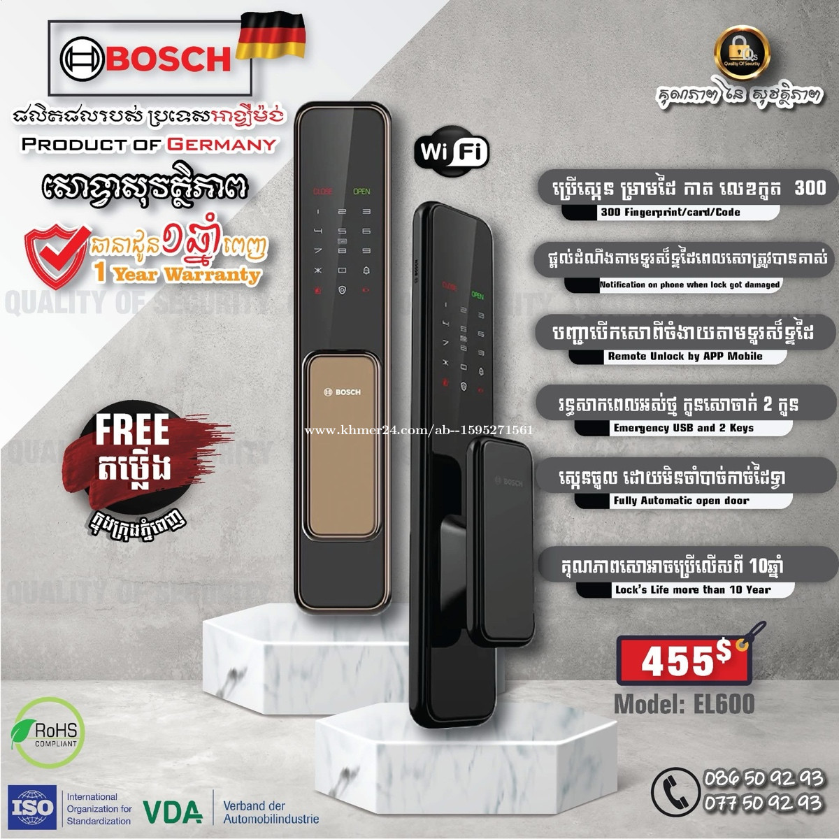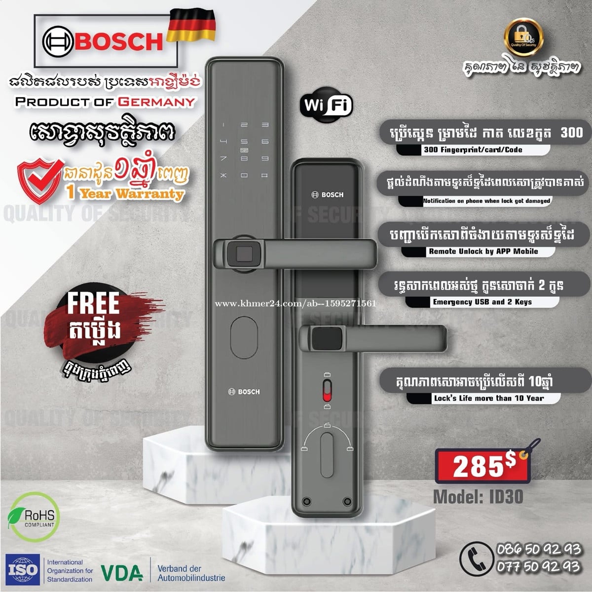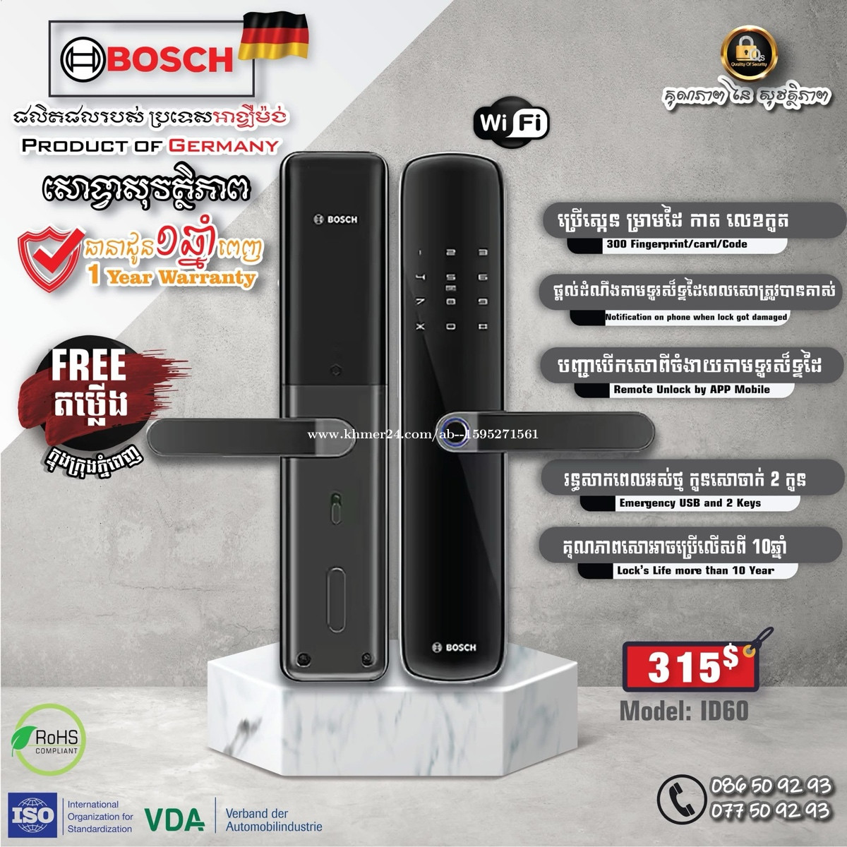 BOSCH SMART LOCK GERMANY Brand Free តម្លើង Free Installation