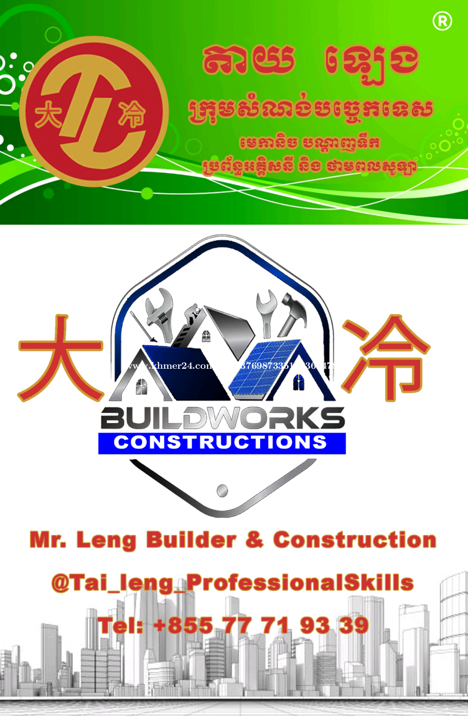 ក្រុមជាង វិជ្ជាជីវៈ ទទួលម៉ៅការសំណង់ ដែក ប្រព័ន្ធអគ្គិសនីសូឡា តាមផ្ទះ ឃ្លាំង សហគ្រាស រោងចក្រ