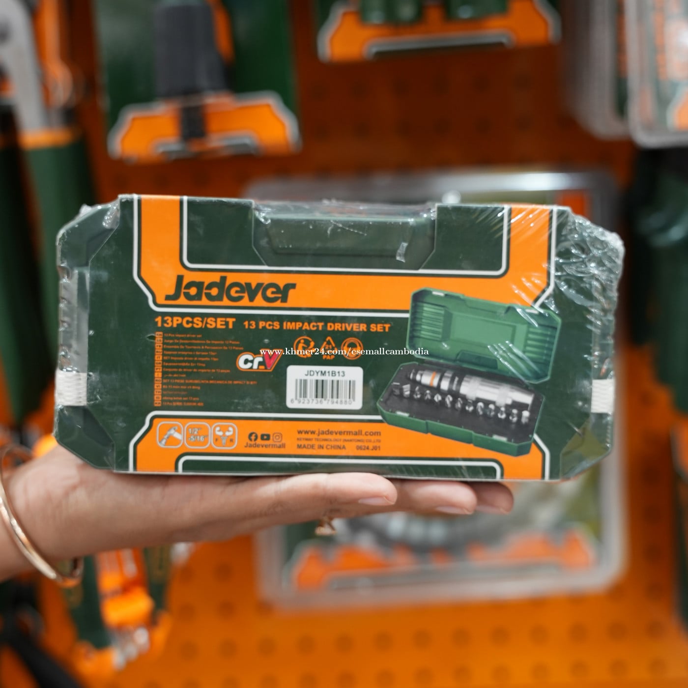 សំណុំវីស JADEVER 13 ដុំ (Impact Driver Bit Set) (JDYM1B13) 🔩 ប្រភេទ៖ សំណុំវីស / Impact Driver Set 🏷 ម៉ាក៖ JADEVER 📦 បរិមាណ៖ 13 ដុំ / Set 🧱 សម្ភារៈ៖ ដែក Cr-V (Chrome Vanadium) 🆕 សភាព៖ ថ្មី 100% មានប្រអប់ដើម ⭐ ពណ៌នាផលិតផល សំណុំដែកវីសប៉ះ JADEVER 13 ដុំ ផលិតពីដែក Cr-V គុណភាពខ្ពស់ រឹងមាំ ធន់នឹងការប៉ះ និងកម្លាំងបងខ្លាំង។ សាកសមសម្រាប់ប្រើជាមួយម៉ាស៊ីន Impact Driver និង Electric Drill សម្រាប់ការងារជាង និងការងារ DIY ប្រចាំថ្ងៃ។ ⭐ លក្ខណៈពិសេស ✅ ដែក Cr-V រឹង មិនងាយបាក់ ✅ ធន់នឹងការប៉ះ (Impact Resistant) ✅ មានដែកវីសច្រើនប្រភេទ សម្រាប់ការងារផ្សេងៗ ✅ ប្រអប់រឹង ងាយរៀបចំ និងងាយយកតាមខ្លួន ✅ សាកសមសម្រាប់ការងារជាង និង DIY 🧰 សមស្របសម្រាប់ ជាងអគ្គិសនី ជាងម៉ាស៊ីន / ជាងយានយន្ត ការងារសំណង់ DIY និងការងារផ្ទះ
