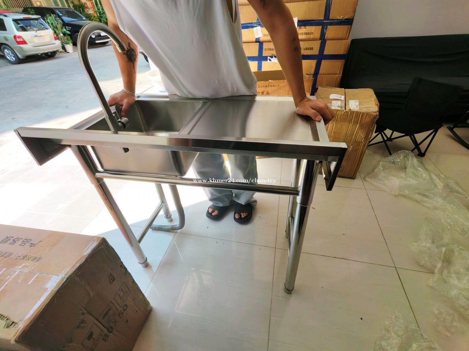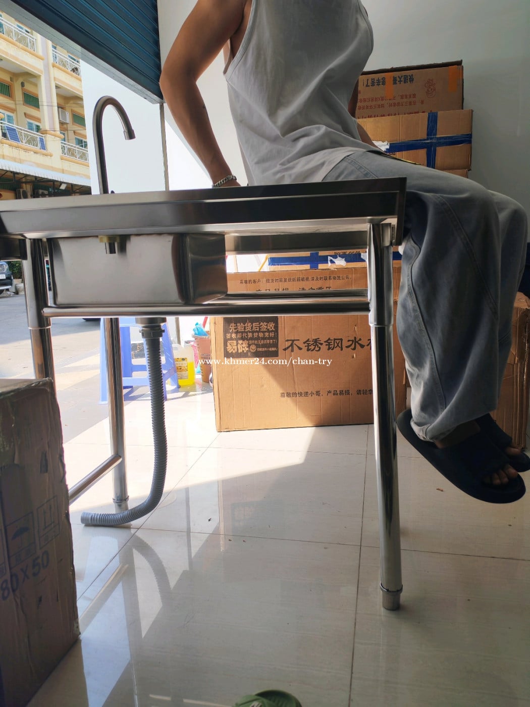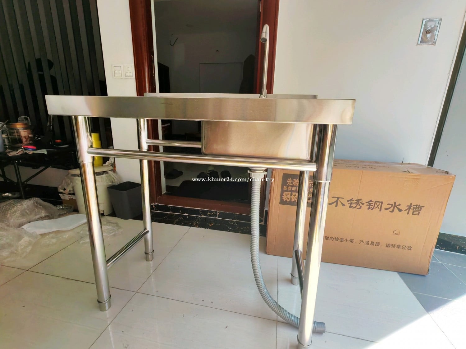 ស៊ីងលាងចានអ៊ីណុកថ្មី ខ្នាត 0.8m x 0.5m x 0.8m ទីតាំងជិតស្ពានដែកឬស្សីកែវ 0968303xxxClick To Call