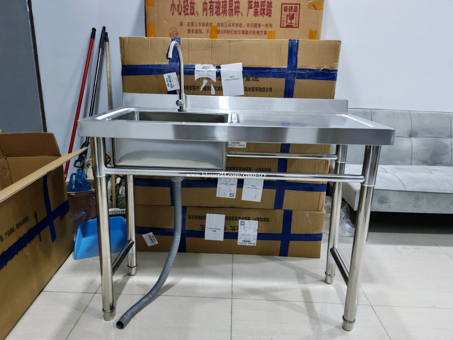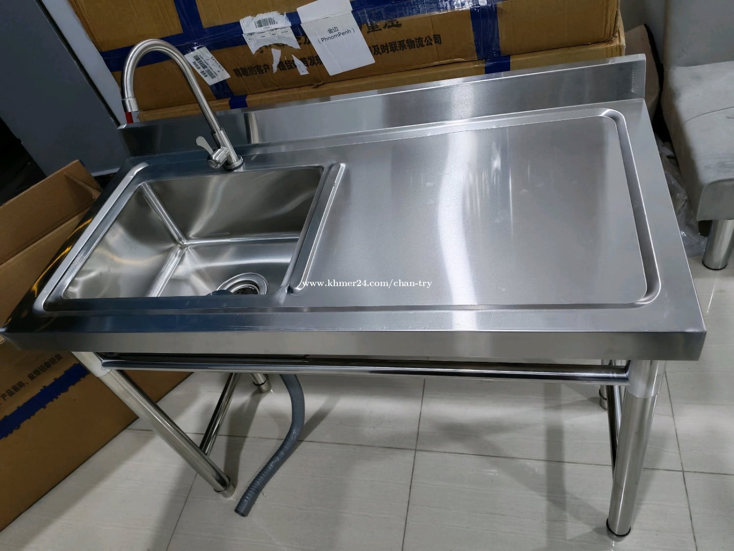 ស៊ីងលាងចានអ៊ីណុកថ្មី ខ្នាត 1m x 0.5m x 0.8m ទីតាំងជិតស្ពានដែកឬស្សីកែវ 0968303xxxClick To Call