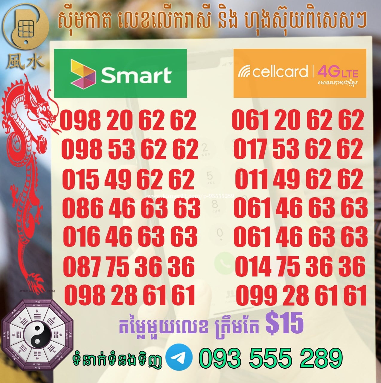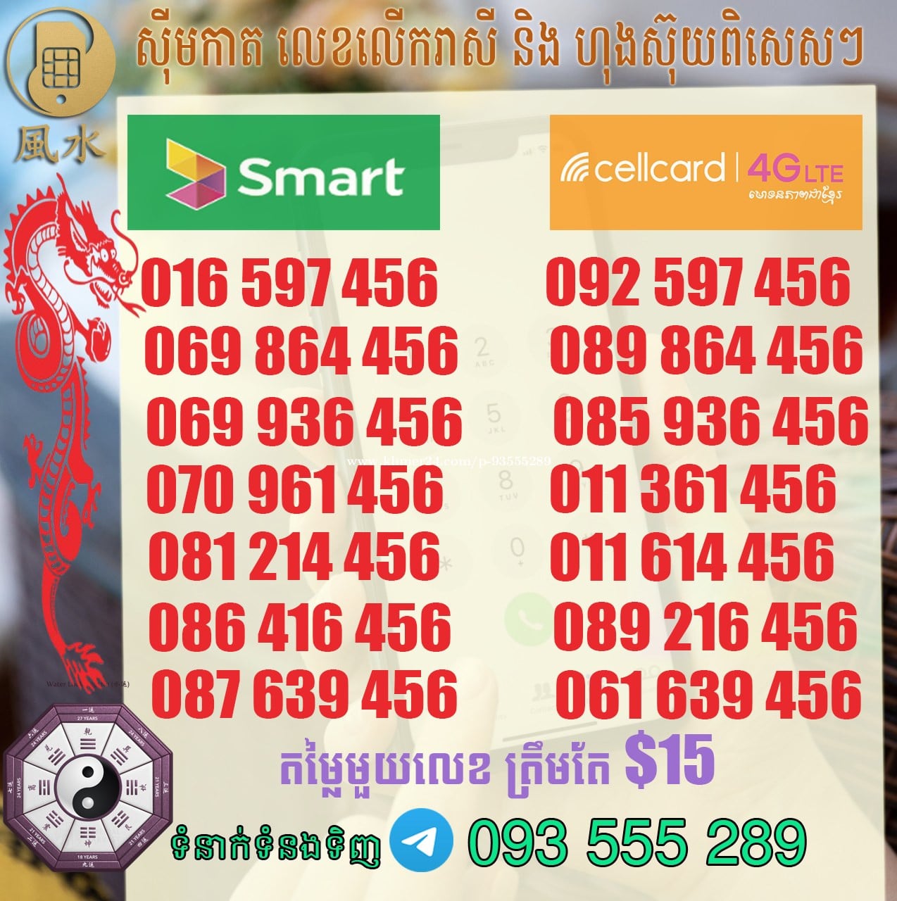 ស៊ីម Smart និង Cellcard លេខហុងស៊ុយ ស្អាតៗ ✍️ធានាមានឈ្មោះនៅក្រុមហ៊ុន 100% ✍️រាល់ ការបែកបាក់ បាត់រឺឆេះស៊ីមអាចបើកវបានវិញ 100% ✍️Free សេវាដឹកជញ្ជូននិង ភ្ជាប់អត្តសញ្ញាណប័ណ្ណដល់ផ្ទះ ✍️ផ្ទៀងផ្ទាត់អត្តសញ្ញាណ (*1202#) ត្រឹមត្រូវទើបបង់លុយ ដើម្បីទិញ តម្រូវអោយមាន អត្តសញ្ញាណប័ណ្ណ រឺ លិខិតឆ្លងដែន ច្បាប់ដើម ដែលមានសុពលភាព ៚ទីតាំង បុរីពិភពថ្មីឈូកវ៉ា2៚ មានសេវា យកអោយ នឹង ចុះឈ្មោះដល់ផ្ទះផងដែរ ☎️ 093 555 289 (Telegram) Telegram: https://t.me/fengshuisimcard FaceBook page: ស៊ីមលើករាសី លេខហុងស៊ុយពិសេសៗ Location: Chhuk va 2 Phnom Penh
