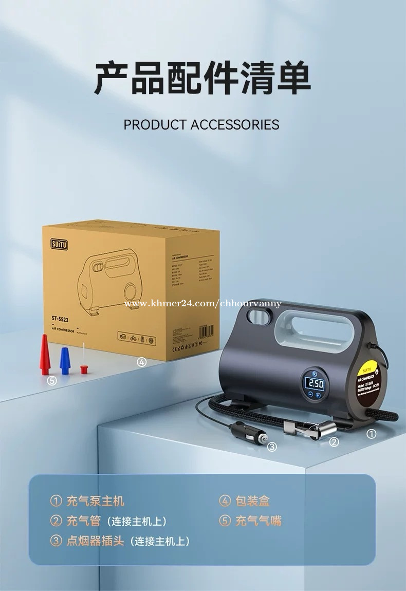 ស្នប់សប់កង់បី ឡាន ម៉ូតូ កង់ : + ស្នប់សប់កង់បី ឡាន ម៉ូតូ កង់ សប់បានលឿនដែលអាចសប់បាន 22L លីត្រខ្យល់ក្នុង1 នាទី។ + មានថែមជូន កាវញ៉ុកប៉ះកង់ឡានមួយឈុត + ប្រើភ្លើង DC ចាប់អាគុយឡាន + កំលាំងខ្យល់ខ្លាំង រហូតដល់ 150PSI H/P: +855969xxxClick To Call 699 (telegram)