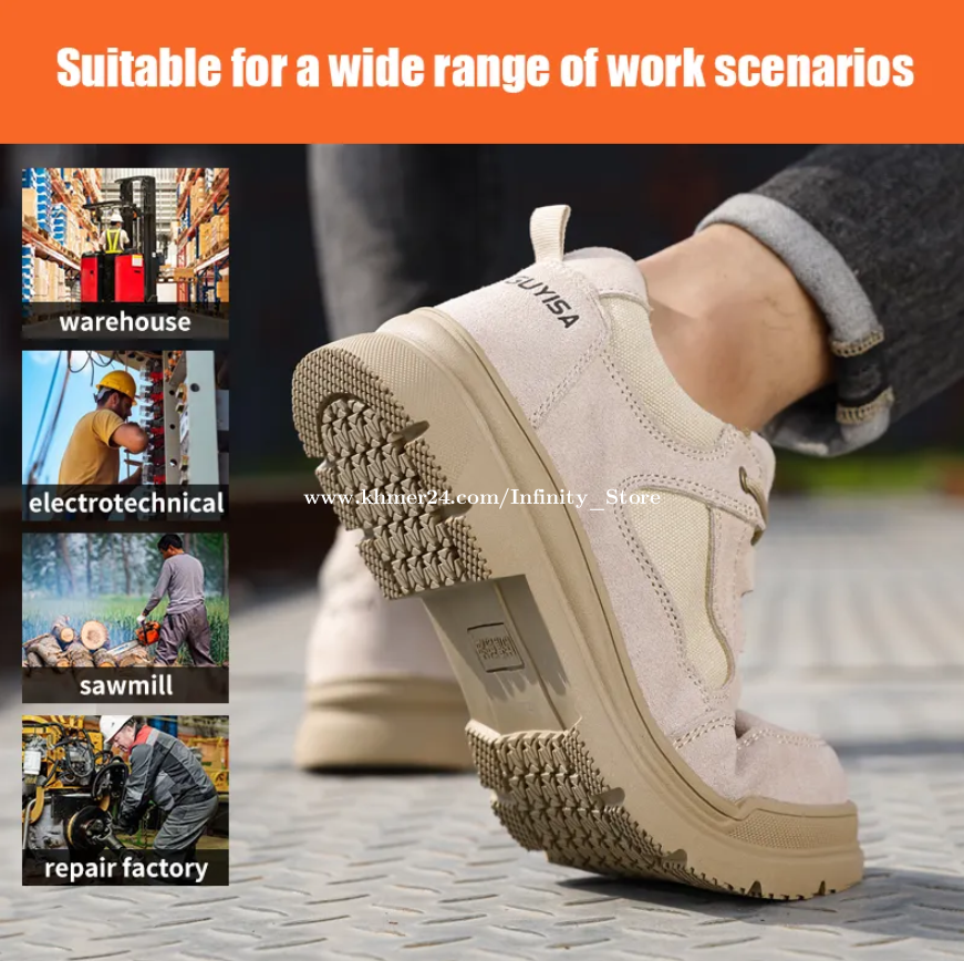 ហាងរបស់យើងខ្ញុំមានលក់ស្បែកជើងសុវត្ថិភាពសុទ្ធ 100% ដែលជាប្រភេទក្បាលដែកនិងបាតដែក (ប្រើប្រាស់បន្ទះ Kevlar) ដែលអាចជួយការពារជើងរបស់អ្នកពីគ្រោះថ្នាក់ផ្សេងៗដូចជាការធ្លាក់របស់ធ្ងន់ពីលើ ការពាររអិលពីប្រេងរឺទឹក ការពារឆក់ខ្សែភ្លើង និងការពារពីការមុតផ្សេងៗដូចជាដែកគោលនិងអំបែងកញ្ចក់។ ទំនាក់ទំនងជាវដុំនិងរាយតាមខាងក្រោម: 📞 089555xxxClick To Call ☎️ Telegram: t.me/sokun_ros 📲 Facebook: https://www.facebook.com/modernsafetybootstore