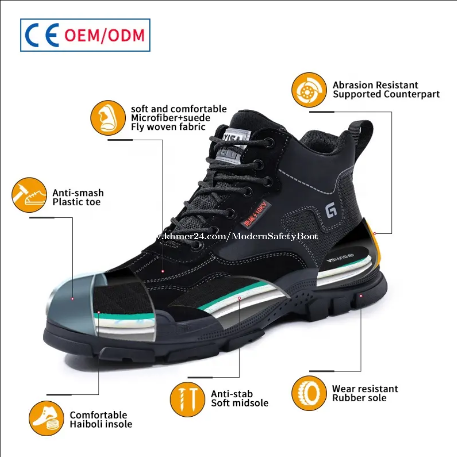 ហាងរបស់យើងខ្ញុំមានលក់ស្បែកជើងសុវត្ថិភាពសុទ្ធ 100% ដែលជាប្រភេទក្បាលដែកនិងបាតដែក (ប្រើប្រាស់បន្ទះ Kevlar) ដែលអាចជួយការពារជើងរបស់អ្នកពីគ្រោះថ្នាក់ផ្សេងៗដូចជាការធ្លាក់របស់ធ្ងន់ពីលើ ការពាររអិលពីប្រេងរឺទឹក ការពារឆក់ខ្សែភ្លើង និងការពារពីការមុតផ្សេងៗដូចជាដែកគោលនិងអំបែងកញ្ចក់។ ទំនាក់ទំនងជាវដុំនិងរាយតាមខាងក្រោម: 📞 089555xxxClick To Call ☎️ Telegram: t.me/sokun_ros 📲 Facebook: https://www.facebook.com/modernsafetybootstore