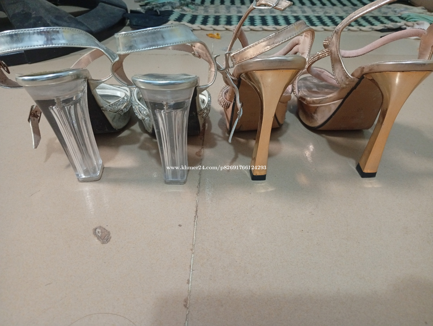 ស្បែងជេីងកូនក្រមុំ និងញាំការ កែងខ្ពស់ខ្លាំង និងខ្ពស់ល្មម ព័ណ៌ផ្លាកទីនពាក់បានម្តងងៃការ ទឹកប្រាក់ បានបីដង