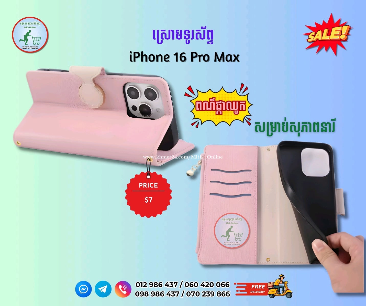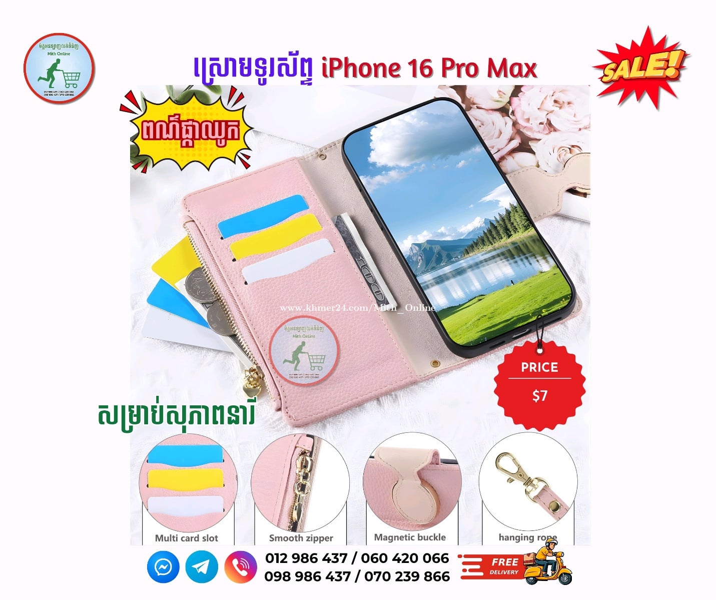 📢 ស្រោមទូរស័ព្ទ iPhone 16 Pro Max📱 ពណ៌ផ្កាឈូក🌸 ឃ្យូតស្អាត 😍 សម្រាប់សុភាពនារី 💃 អាចប្រើសម្រាប់ដាក់លុយ 💸និងសម្ភារៈផ្សេងៗបាន មានខ្សែយួរ ឬស្ពាយបាន 💰 តម្លៃ $7 📦 ដឹកជញ្ជូនឥតគិតថ្លៃ Free Delivery ☎️ 012986xxxClick To Call / 060420xxxClick To Call ☎️ 098986xxxClick To Call / 070239xxxClick To Call