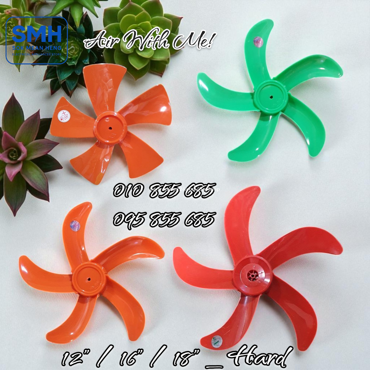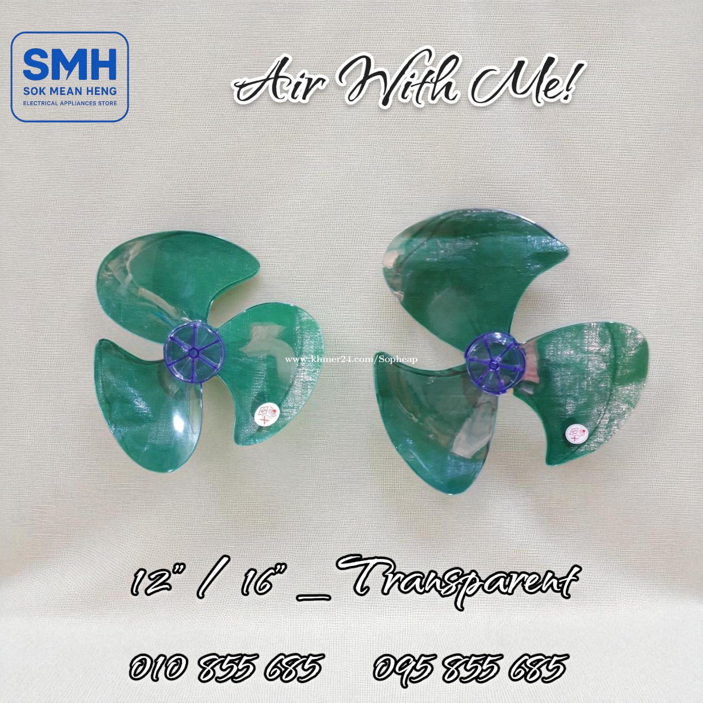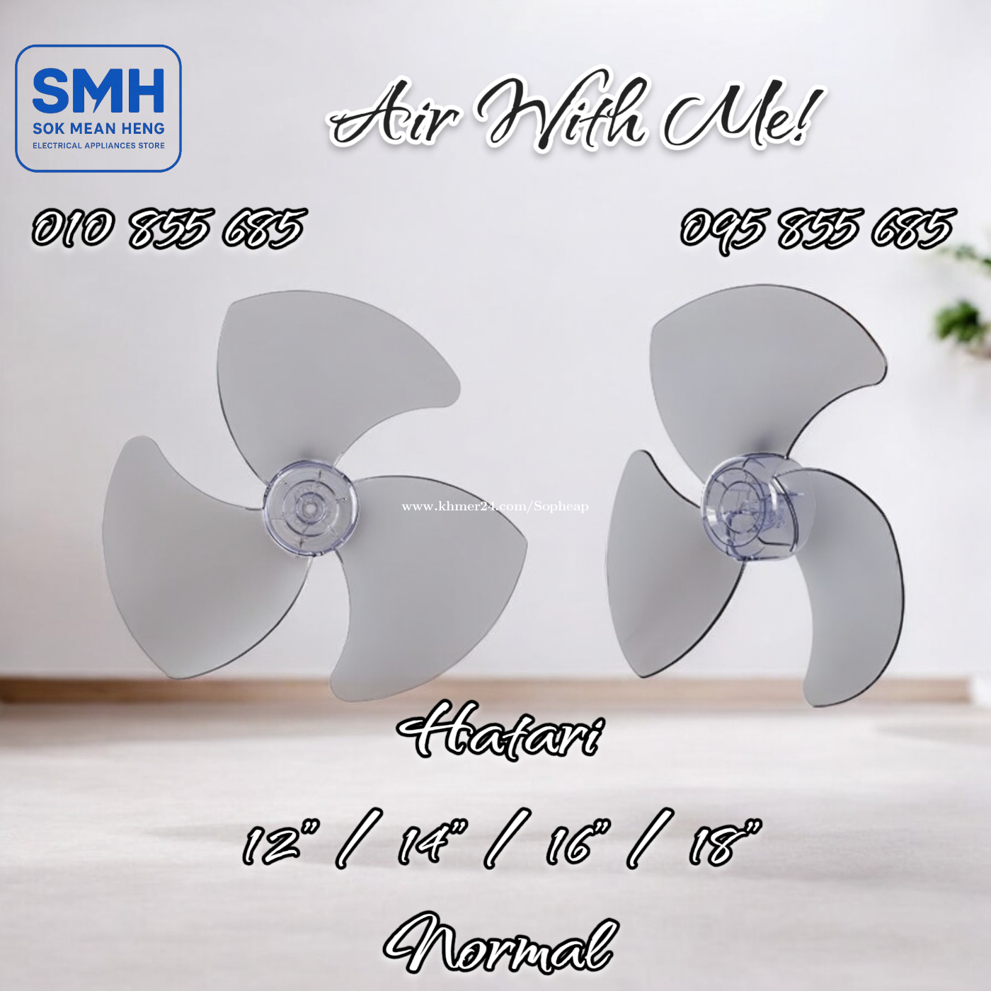 ស្លាបកង្ហារ Hatari / VN Fan Balde _ 12” / 14” / 16” / 18” . * Note: 12” = 30cm (3តឹក) / 14” = 35cm (3.5តឹក) / 16” = 40cm (4តឹក) / 18” = 45cm (4.5តឹក) . 1. ស្លាបកង្ហារ Hatari _ Original - 12” = 3.5$ - 14” = 5.5$ - 16” = 6.5$ - 18” = 11.5$ . 2. ស្លាបកង្ហារ Hatari _ Normal - 12” = 1.5$ - 14” = 2.5$ - 16” = 3.5$ - 18” = 8$ . 3. ស្លាបកង្ហារ VN _ ទន់ / Soft - 12” = 1$ - 16” = 1.25$ . 4. ស្លាបកង្ហារ VN _ រឹង / Hard - 12” = 1.25$ - 16” = 1.5$ - 18” = 3.5$ . 4. ស្លាបកង្ហារ VN _ ថ្លា / Transparent - 12” = 1.25$ - 16” = 1.5$ . SMH / សុខ មាន ហេង / Sok Mean Heng ហាងលក់គ្រឿងប្រើប្រាស់អគ្គិសនី / Electrical Appliances Store . ✅ ហាងផ្លូវការដែលមានការទទួលស្គាល់ត្រឹមត្រូវដោយ Khmer24 / Verified Business Account by Khmer24 💯 ទទួលបានទំនុកចិត្តខ្ពស់ពីអតិថិជនជាច្រើន / Trusted by Real Customers. 📍 មានទីតាំងច្បាស់លាស់ និងពិតប្រាកដនៅភ្នំពេញ / We have a clear and real/verified location in Phnom Penh. . Phone / Telegram (សេវាកម្មរហ័ស / Fast Service): Smart: 010855xxxClick To Call / https://t.me/Annsopheap Cellcard: 095855xxxClick To Call / http://t.me/Annsopheap095 . អាស័យដ្ឋាន / Address: No. 392, MaoTseToung Blvd. (St. 245), Phnom Penh. (Near P Jolie Beauty Center) . ផែនទី / Maps: https://www.google.com/maps?q=11.55595844757693,104.90165490657091&15 . #ស្លាបកង្ហារ #ថៃ #វៀតណាម #គ្រឿងអគ្គីសនី #គ្រឿងប្រើប្រាស់អគ្គិសនី #Hatari #FanBlade #Blade #Thailand #Vietnam #SMH #Appliances #ApplianceStore #HomeAppaliance #ElectricAppliances #ElectricalAppliances #Promotion #Discount #Save #Free #New