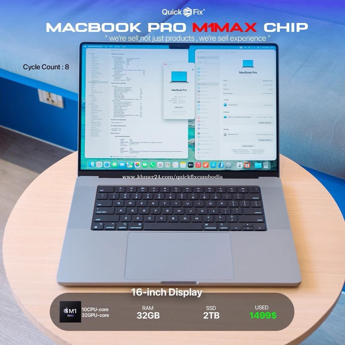 ស្អាតទាំងម៉ាសុីន ទាំងតួរ សំខាន់ 2TB ទៀត 😎 M1Max 32GPU ពេញបឹបមិនងាយមានទេបាទ មានតែមួយគត់ក្នុងស្តុក 🙀 “ 𝐁𝐋𝐀𝐂𝐊 𝐅𝐑𝐈𝐃𝐀𝐘 𝐒𝐀𝐋𝐄 “ Starting from 𝟐𝟑.𝟏𝟏.𝟐𝟓-𝟑𝟎.𝟏𝟏.𝟐𝟓 🗓️ ▪️Discount on Products up to 100$ ▪️Get 4 gift included ( Hub , Screen Guard , Keyboard Guard , Laptop Sleeve ) ▪️Mini Game : Spin to Win 🎮 •Apple Magic Mouse •Hyperwork Mouse •Hyperwork Keyboard •Voucher ( 5$,10$,30$, 5% off ) •Extra Warranty up to 2Year 𝐅𝐎𝐑 𝐌𝐎𝐑𝐄 𝐈𝐓𝐄𝐌 : quickpcfixaz.net 𝐂𝐎𝐍𝐓𝐀𝐂𝐓 𝐔𝐒 𝐍𝐎𝐖 ⬇️ Telegram : https://t.me/quickfixsale Hotline : 0762502xxxClick To Call