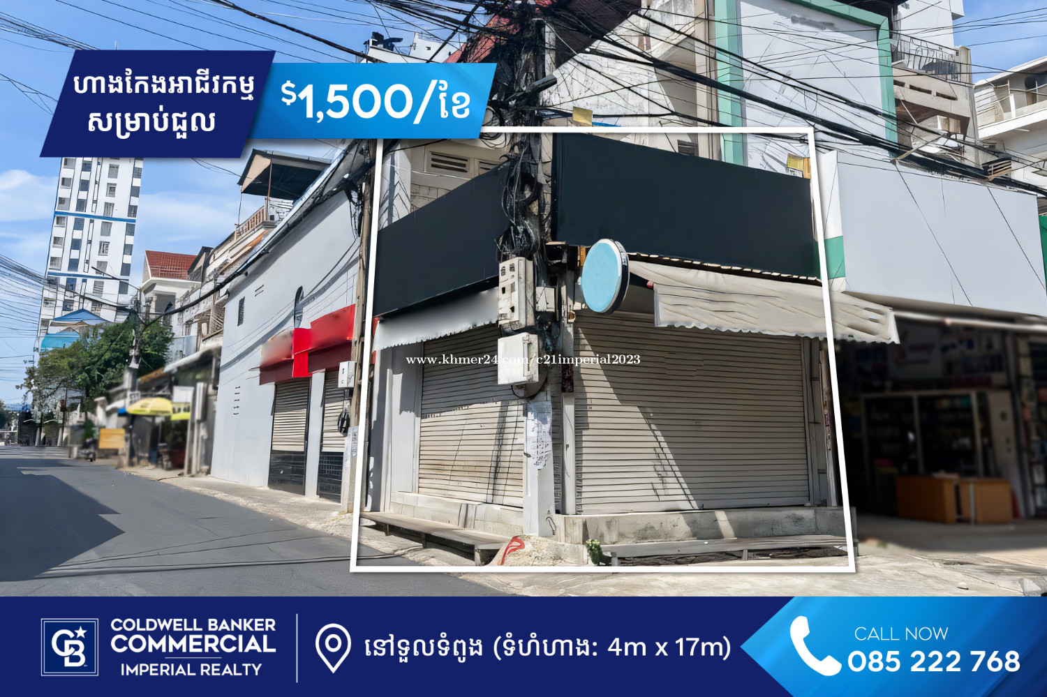 -តម្លៃជួល : 1,500$ ក្នុងមួយខែ -ទំហំផ្ទះហាង: 4m x 17m -ជាន់E0 -បន្ទប់ : 01 -បន្ទប់ទឹក : 01 -កុងត្រា 2ឆ្នាំឡើង *ទីតាំងនៅជិតផ្សារ និងសាលារៀន អាចជួលសម្រាប់បើកអាជីវកម្មគ្រប់ប្រភេទ។ ————————————————————————————— ✉️សម្រាប់ព័ត៌មានលំអិត និងរូបភាពបន្ថែមសូមទំនាក់ទំនងៈ ☎️085222xxxClick To Call | 069993xxxClick To Call 🔗Telegram : https://t.me/imperialcomercial 🌐Website : https://imperialrealty.com.kh