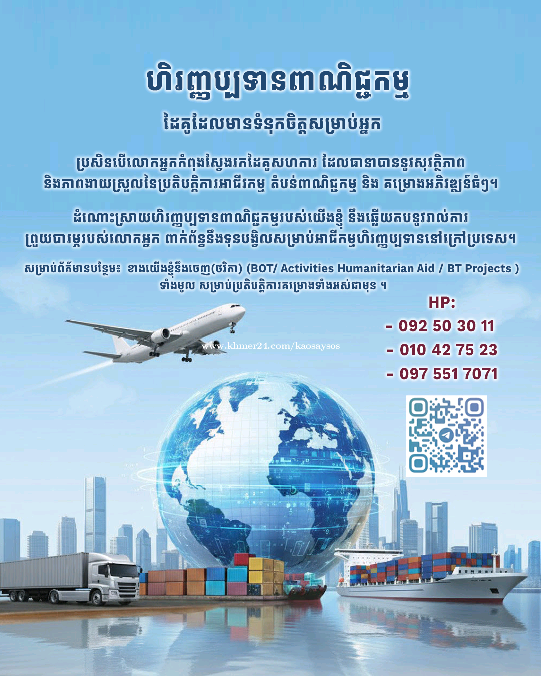 ហិរញ្ញប្បទានពាណិជ្ជកម្ម 📈 ប្រសិនបើលោកអ្នកកំពុងស្វែងរកដៃគូសហការ ដែលធានាបាននូវសុវត្ថិភាព និងភាពងាយស្រួលនៃប្រតិបត្តិការអាជីវកម្ម តំបន់ពាណិជ្ជកម្ម និង គម្រោងអភិវឌ្ឍន៍ធំៗ។ ដំណោះស្រាយហិរញ្ញប្បទានពាណិជ្ជកម្មរបស់យើងខ្ញុំ នឹងឆ្លើយតបនូវរាល់ការព្រួយបារម្ភរបស់លោកអ្នក ពាក់ព័ន្ធនឹងទុនបង្វិលសម្រាប់អាជីកម្មហិរញ្ញប្បទាននៅក្រៅប្រទេស។ 🌍 ☎️ សម្រាប់ព័ត៌មានបន្ថែម៖ ខាងយើងខ្ញុំនឹងចេញ(ថវិកា) (BOT/ Activities Humanitarian Aid / BT Projects ) ទាំងមូល សម្រាប់ប្រតិបត្តិការគម្រោងទាំងអស់ជាមុន ។ វិនិយោគសហការម៉ៅផ្តាច់គម្រោងទាំងមូល ខាងយើងនឹងចេញ(ថវិកា)ធ្វើឲ្យមុនទាំងអស់បាន...។ Trade Finance Services 📈 If you are looking for a trusted partner who can provide a secure, efficient and convenient way of conducting trade transactions, Commercial with Industrial Areas,SEZ Zones. is here to support you. Our Trade Finance solution will address all the concerns you have relating to working capital for your overseas trade business.🌍 ☎️ For More Information: HP: - 092503xxxClick To Call - 010427xxxClick To Call - 0975517xxxClick To Call Telegram ID: https://t.me/SayNisay ---------------------------------------- - ទទួលទូទាត់ម៉ៅផ្តាច់គម្រោងទាំងមូល សម្រាប់ការងារអភិវឌ្ឍន៍ ម៉ៅការផ្តាច់ផ្ទាល់គម្រោងធំៗ គម្រោងសាងសង់ហេដ្ឋារចនាសម្ព័ន្ធ ផ្លូវថ្នល់-ស្ពាន សំណង់អគារ គម្រោងប្រព័ន្ធធារាសាស្ត្រ គម្រោងអភិវឌ្ឍន៍តំបន់កសិឧស្សាហ៍កម្ម គម្រោងវិនិយោគតំបន់ឧស្សាហ៍កម្ម រោងចក្រ សហគ្រាស ឃ្លាំង តំបន់សេដ្ឋកិច្ចពិសេស ...។ល។... - មានទទួលទូទាត់ថវិកាផ្តាច់ជាមុន នូវរាល់ទំនាក់ទំនងពាណិជ្ជកម្មអន្តរជាតិ និង អាជីវកម្មនានា...។ - មានទទួលផ្តល់សេវាកម្មធានារ៉ាប់រង (ថវិកា)គម្រោងទូទាត់ផ្តាច់...។ - សេវាកម្មដឹកជញ្ជូនម៉ៅផ្តាច់គម្រោង ៖ ជួល_លក់ រថយន្តដឹកជញ្ជូនគ្រប់ប្រភេទ...។ សម្រាប់ព័ត៌មានលម្អិតបន្ថែម ទំនាក់ទំនងមកកាន់យើងខ្ញុំបាន តាមរយៈតេឡេក្រាមខាងក្រោម៖ https://t.me/SayNisay Phone Contact: 092503xxxClick To Call 0975517xxxClick To Call 010427xxxClick To Call ជាដៃគូអភិវឌ្ឍន៍ធុរកិច្ច និង គម្រោងវិនិយោគអាជីវកម្ម របស់អ្នក ! With Your Business Development Partner and Business Investment Projects ! https://t.me/BusinessNisayInvestment ---------------------------------- មានទទួលម៉ៅការផ្តាច់ លើការអភិវឌ្ឍគម្រោងសួនឧស្សាហកម្ម_ពាណិជ្ជកម្ម តំបន់សេដ្ឋកិច្ចពិសេស (SEZ & Dry Ports ) និង គម្រោងសាងសង់ ៖ My Private Telegram: https://t.me/SayNisay - ទទួលម៉ៅផ្តាច់សាងសង់ផ្លូវថ្នល់ ស្ពាន ផ្លូវកៅស៊ូ ផ្លូវបេតុង...។ - ទទួលម៉ៅសាងសង់ផ្តាច់គម្រោងប្រព័ន្ធធារាសាស្រ្ត ជីកព្រែក ស្រះ ប្រឡាយ ច្រាំងទន្លេ...។ -ទទួលម៉ៅផ្តាច់ចាក់ខ្សាច់ដីលុបបំពេញ កាយកៀរកិនបង្ហាប់ ក្នុងគម្រោងទាំងមូល...។ -មានផ្គត់ផ្គង់ឈុតគ្រឿងចក្រ តូចធំ សម្រាប់ជួល ។ - មានទទួលផ្តល់ប្រាក់កម្ចី សម្រាប់ការអភិវឌ្ឍគម្រោងធំៗ - ទទួលសហការវិនិយោគការអភិវឌ្ឍគម្រោងទាំងមូលរួមគ្នា ...។ - មានទទួលជួលលក់៖ អគារ រោងចក្រខ្នាតធំៗ ឃ្លាំងខ្នាតធំៗ អគារខុនដូ វីឡា សណ្ឋាគារ និង កាស៊ីណូ (Hotels and Casinos) , រមណីយដ្ឋាន (រីស៊ត)=(ទិញលក់ជួលវិនិយោគអចលនទ្រព្យ) - មានជួលប្រចាំខ