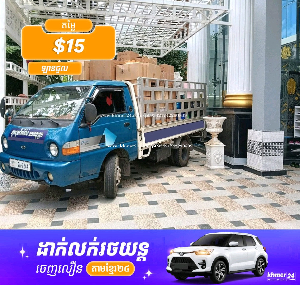 1👍.ខ្ញុំបាទមានសេវាកម្មខាងដឹកជញ្ជូន 25 ខេត្តក្រុង។ 2👍.ដឹកអីវ៉ាន់គ្រប់ប្រភេទ.ដឹកបានទាំងថ្ងៃទាំងយប់មិនរើសពេលវេលា។ .3👍ដឹកអីវ៉ាន់ប្រកបដោយទំនុកចិត្ត។និងមើលថែឥវ៉ាន់មិនឱ្យបាត់បង់។ .4👍ដឹកបានគ្រប់ជនជាតិមិនថាខ្មែរចិនឬរឿងសាសន៍ផ្សេងៗទេដឹកបានទាំងអស់។ .5👍ឡានចាប់ពីមួយតោនកន្លះដល់បីតោនកន្លះនិងមានឡានស្ទូចផងដែរ។ .6👍ខាងយើងខ្ញុំមានជាងដោះតុទូមានបទពិសោធន៍យូរឆ្នាំ។ .7👍យើងខ្ញុំមានកម្មករលើកអីវ៉ាន់ផងដែរ។ Call. Cellcard 089433xxxClick To Call Call. Metfone.0887909xxxClick To Call Call.smart.0969727xxxClick To Call 👏សូមអរគុណចំពោះការទំនាក់ទំនងមកដោយពេញចិត្ត។