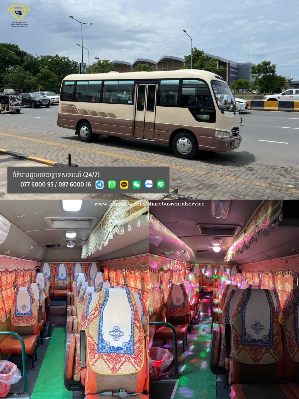 📣ទំនាក់ទំនងជួលឡាន / Bus For Rent (24/7) ☎️ 077600xxxClick To Call ☎️ 087600xxxClick To Call (Telegram,WhatsApp) -Telegram: https://t.me/sharebusrentalservice -WhatsApp: 087600xxxClick To Call -KakaoTalk ID: Sharebusrental -WeChat ID: Sharebusrental -Line ID: Sharebusrental -Zalo: (+855) 87 600 016 -Email: sha***********@gmail.comClick To Sent Email យើងខ្ញុំមានរថយន្តទេសចរណ៏សម្រាប់ជួលទៅ25ខេត្តក្រុង Tourist Bus Rental Service in Cambodia 🇰🇭 #sharebusrentalservice #រថយន្តទេសចរណ៍25កៅអីសំរាប់ជួល #រថយន្តទេសចរណ៍សំរាប់ជួល #24កៅអី #24seats #២៤កៅអី #25កៅអី #រថយន្តទេសចរណ៍ #ឡានទេសចរណ៍ #២៥កៅអី #រថយន្តក្រុង #ឡានក្រុង #មានឡានជួល #25seats #ឡានជួល #ជួលឡាន #bus #trips #tour #សេវាកម្មជួលរថយន្តទេសចរណ៍គ្រប់ខេត្តក្រុង #សេវាកម្មជួលឡាន #Hyundai #HyundaiCounty #រថយន្តសម្រាប់ជួល #សៀមរាប #siemreap #កំពង់សោម #sihanoukville