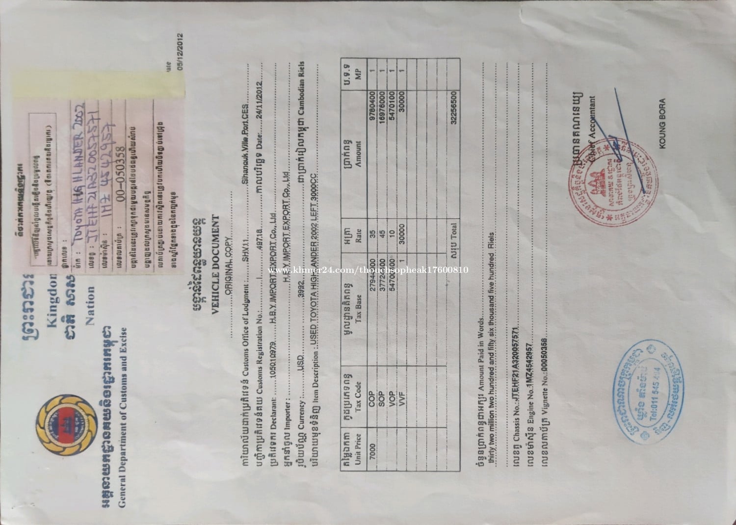 ឡានលក់ ម៉ាក Toyota 2002 ប៉ុង២ full limited បើកដំបូល កៅអីចុច មានក្តៅពូក គុចលេងហើយ ប៉ាណា មាន២ ម៉ាសុីនស្ងាត់ ជើងក្រោមដូរហើយស្អាតអស់300$ TEL 0719998xxxClick To Call 016546xxxClick To Call ឡានផ្ទាល់ខ្លួន 10.900ចរចារ ធនាឡានស្អាត