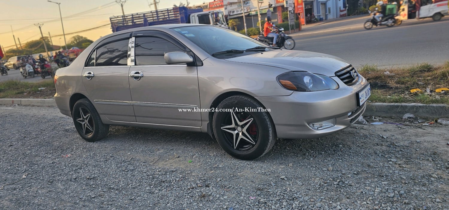 ឡានលក់ កូរ៉ូឡា ឆ្នាំ03 ពណ៌មាស ជាប្រភេឡានស្អាត ធានា ឡានស្អាត អត់បុក អត់ច្រេះ អត់កាត់ត អត់ស្ងោរប្តូរពណ៌ ធានា ម៉ាស៊ីនស្អាត ស្ងាត់ល្អ ស្ទុះខ្លាំង ប្រអប់លេខរត់ស្រួល គ្រឿងក្រោមហាប់ល្អ ធានា ឯកសារ គ្រប់ ចំនួន