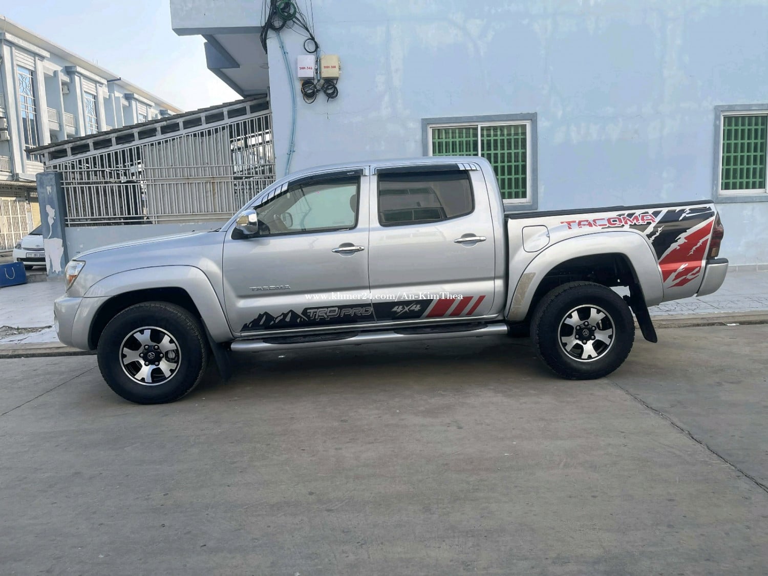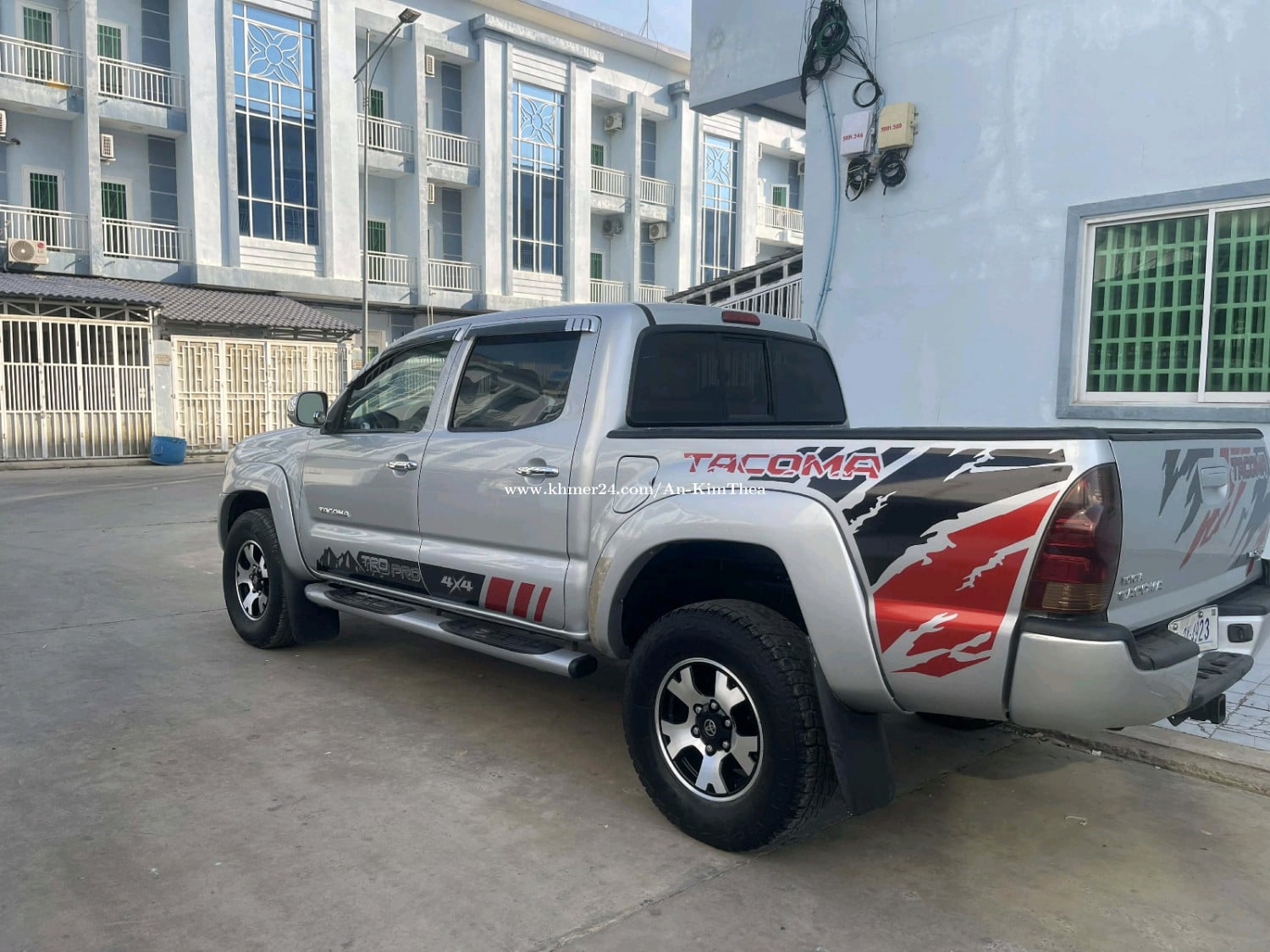 ឡានលក់តាកូម៉ា ឆ្នាំ05 ប៉ុងភ្លើង ពណ៌ទឹកប្រាក់ ទ្រុងខ្លី ជាប្រភេទឡានស្អាត ធានា អត់បុក អត់ច្រេះ អត់កាត់ត អត់ស្ងោរប្តូរពណ៌ ទឹកថ្នាំបាញ់តិចតួច ធានា ម៉ាស៊ីនស្អាត ប្រអប់លេខរត់ស្រួល គ្រឿងក្រោមហាប់ល្អ ធានា ឯកសារគ្រប់ ចំនួន