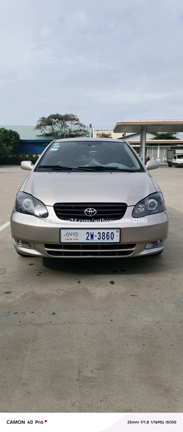 ឡានលក់ Corolla 2003. មានការធានាជូន ឡានថ្មីអត់បុកអត់ប៉ះ អត់ច្រេះ ទឹកថ្មាំ 85/💯 ម៉ាស៊ីនប្រអប់លេខ ម៉ាស៊ីនត្រជាក់ គ្រឿងក្រោម អេម កង់ថ្មី ឯកសារគ្រប់💯 ម្ចាស់ដេីម