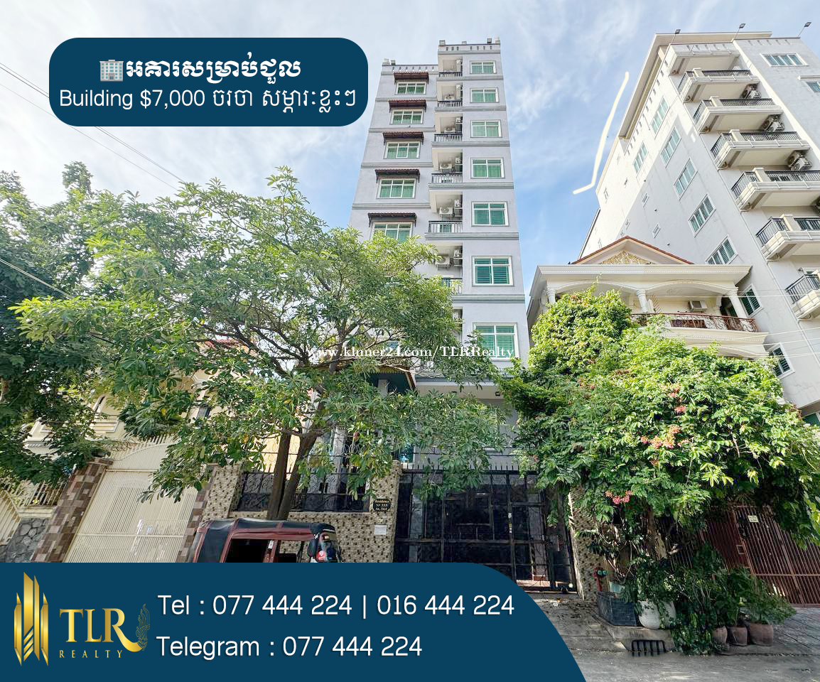 🏢អគារសម្រាប់ជួល | Building for Rent 💲តម្លៃជួល | Price Rent : $7,000 ចរចា - សម្ភារៈ | Furniture : Some - ទំហំអគារ | Building Size : 8.2m x 22m - បន្ទប់គេង | Bedroom : 29 - បន្ទប់ទឹក | Bathroom : 30 - ការិយាល័យ | Office room : 1 - ជណ្ដើរយន្ត | Elevator : 1 - ចំណត | Parking Lot : More - អគារបែរទិសទៅត្បូង | Facing to South 📍ទីតាំងស្ថិតនៅក្នុង សង្កាត់បឹងកក់១ ខណ្ឌទួលគោក រាជធានីភ្នំពេញ | Located in Phnom Penh. # អត្តលេខអាជ្ញាប័ណ្ណ : E-24-449 📞 Cellcard : 077444xxxClick To Call 📞 Smart : 016444xxxClick To Call 📞 Metfone : 066444xxxClick To Call 📱 Telegram : 077444xxxClick To Call 📱 Channel telegram : https://t.me/RithyTLR
