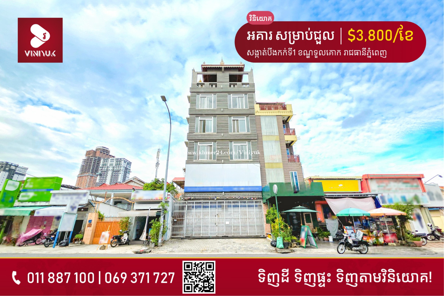 🏡អគារ(5ជាន់) សម្រាប់ជួល!! 📍ទីតាំង ៖ នៅសង្កាត់បឹងកក់ទី1 ខណ្ឌទួលគោក រាជធានីភ្នំពេញ - តម្លៃជួល៖ $3,800/ខែ ចរចា - ទំហំអាគារ : 8m X 12m - ទំហំក្នុងប្លង់ : 102m² - មាន 5ជាន់ (លក្ខណៈជាការិយាល័យ) - មានជណ្តើរយន្ត 1 - ទិសបែរខាងត្បូង - លេខអាជ្ញាប័ណ្ណ : E-22-404