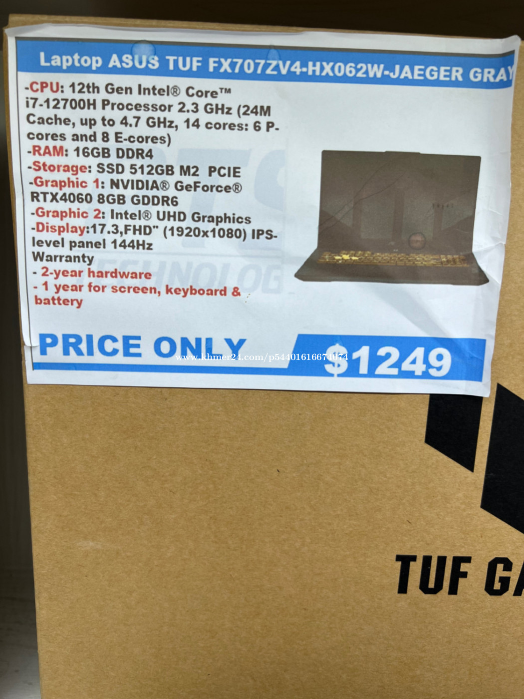 CPU core i7 12700H Ram 16GB SSD 512GB VGA RTX 4060 8GB Screen 17.3” 144Hz នៅwarranty ក្រុមហ៊ុនជាងមួយឆ្នាំ Talegram 012945xxxClick To Call