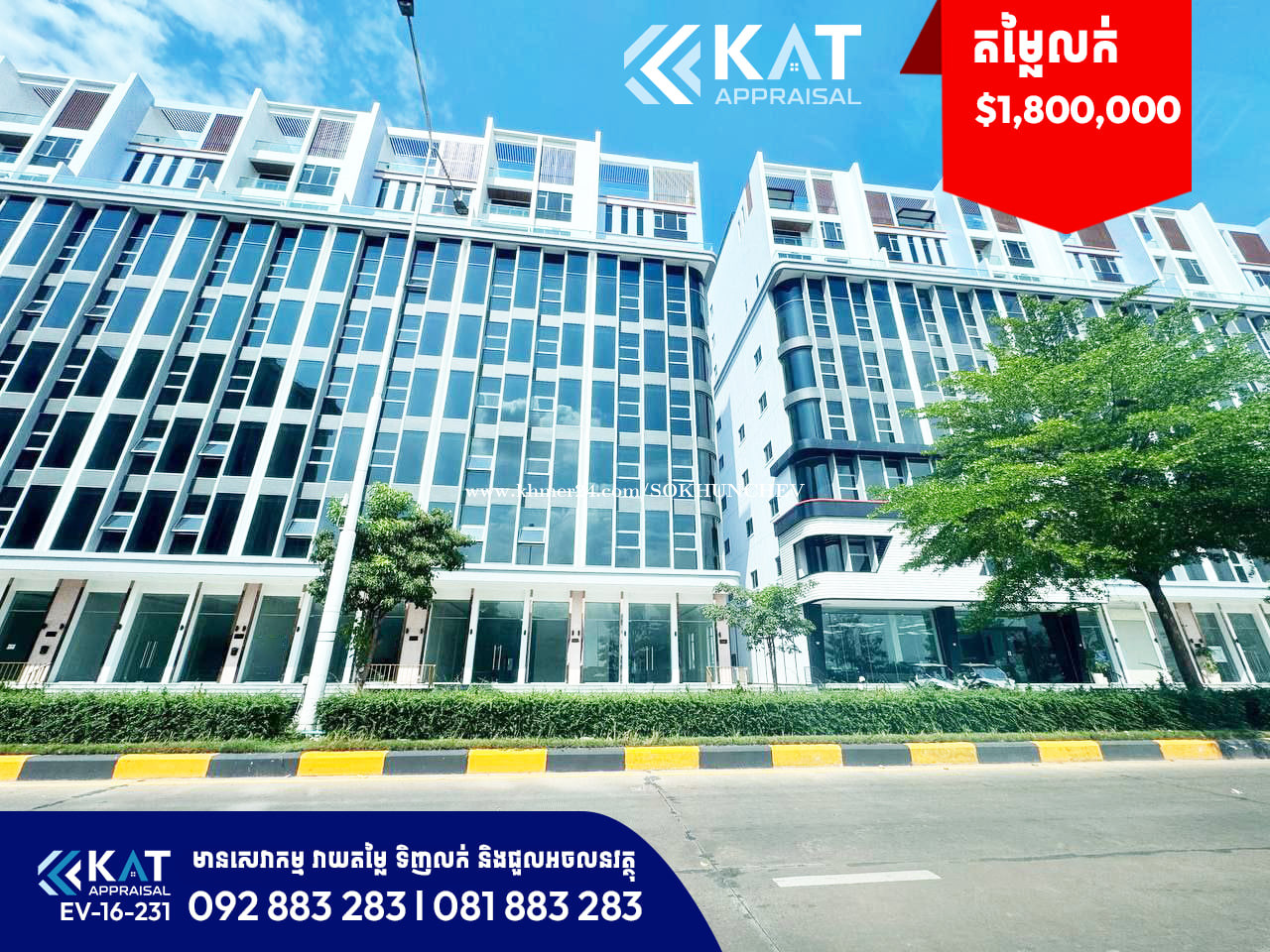 អាគារ សម្រាប់លក់ | Building For Sale - តម្លៃលក់: Price: $1,800,000 - ទំហំអាគារ | Building Size: 8.2m x 20m - ប្លង់រឹង | Hard Title - ទីតាំង: សង្កាត់ព្រែកលៀប ខណ្ឌជ្រោយចង្វាររាជធានីភ្នំពេញ។ Tel: 092883xxxClick To Call l 081883xxxClick To Call Telegram Chat : https://t.me/katappraisalsupport Telegram Channel : https://t.me/KAT_APPRAISAL